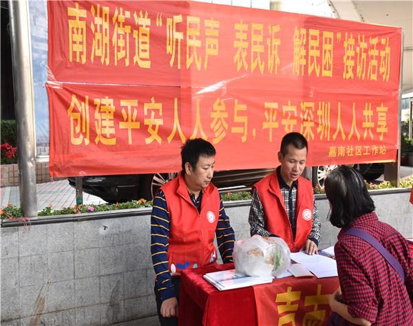 2018年2月28日下午,嘉南社区党委组织党员志愿者、社区工作人员、社工在江背路路口开展了“三民”接访及安全生产、反诈骗、禁毒综合宣传活动。
