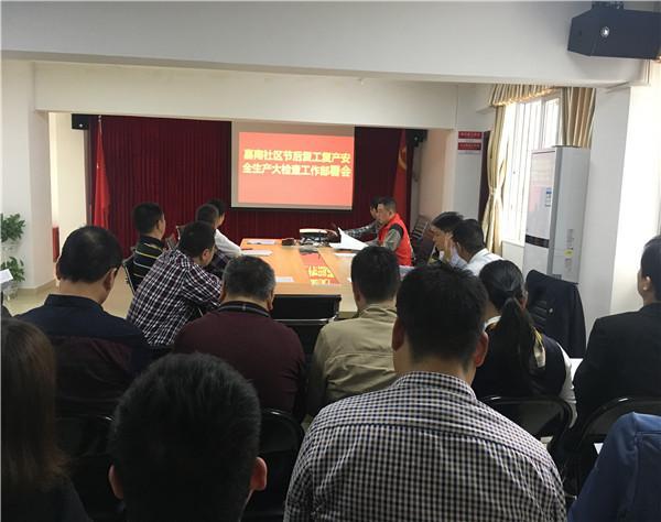 2018年3月1日下午,嘉南社区在多功能会议召开了年后复工复产再部署动员会,会议由嘉南社区党委书记、工作站站长张宇主持,社区工作站安全生产专干、辖区小区、大厦各物业公司负责人,社区三小门店及餐饮酒店场所负责人参加了会议。