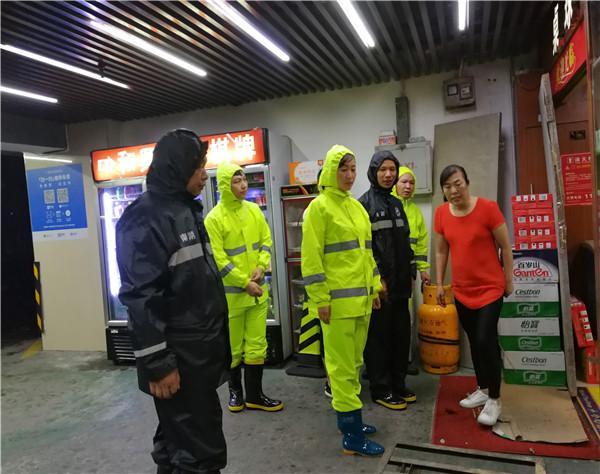 在16日下午至晚上,社区党委书记张宇带领社区工作站人员再次巡查辖区三小场所、居民住宅、物业公司、在建工地安全隐患情况,确保辖区每个角度的安全。面对台风的破坏,辖区众多树木倒伐,导致道路堵塞,积水严重情况,晚上社区工作站人员沿着社区每一条道路,清理树枝,排通下水道,恢复道路正常通行。