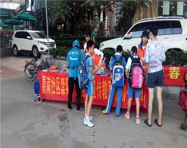 9月6日下午,嘉南社区党委、居委会、服务中心联同罗湖禁毒社工在庐山酒店门口开展了主题为“嘉南社区禁毒(康复)宣传教育”活动。
