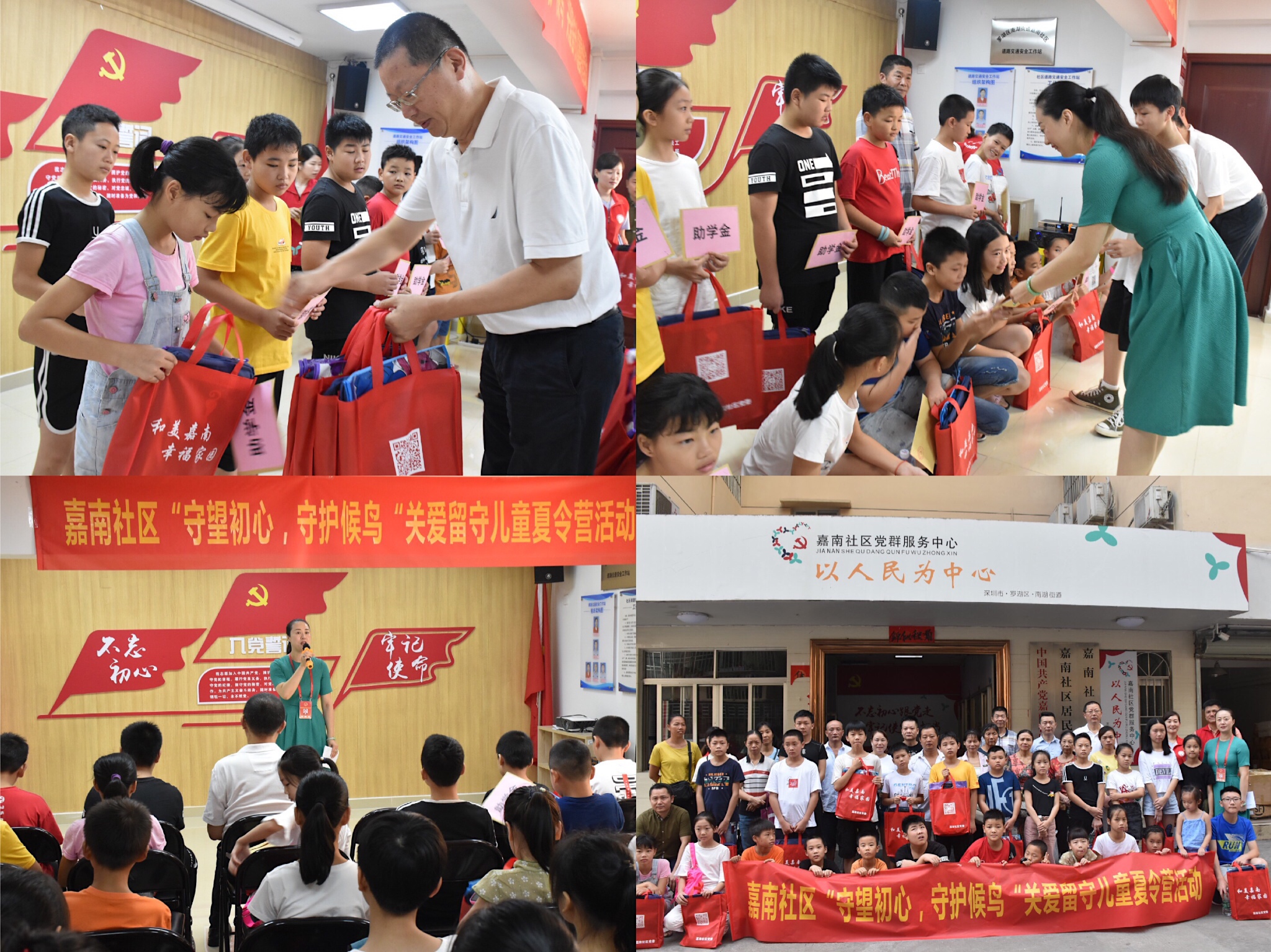 嘉南社区讯,儿童是民族的希望,是祖国的未来,为了促进社区外来务工人员融入深圳、融入社区,不断提升群众的获得感、幸福感及满意度,推进党组织建设,让广大外来务工人员能与孩子更好的沟通,让亲情和关爱不因距离而隔断,2019年8月9日上午,嘉南社区党委在社区组织了一场“守望初心,守护候鸟”关爱留守儿童夏令营活动,给留守儿童送上一份来自社区的关怀。社区党委邀请了20组家庭困难、品学兼优的外来务工子女赴深与父母团聚,度过快乐暑假。本次活动非常荣幸邀请到了市人大代表南湖小学刘建琪校长和庐山集团吕涛书记。