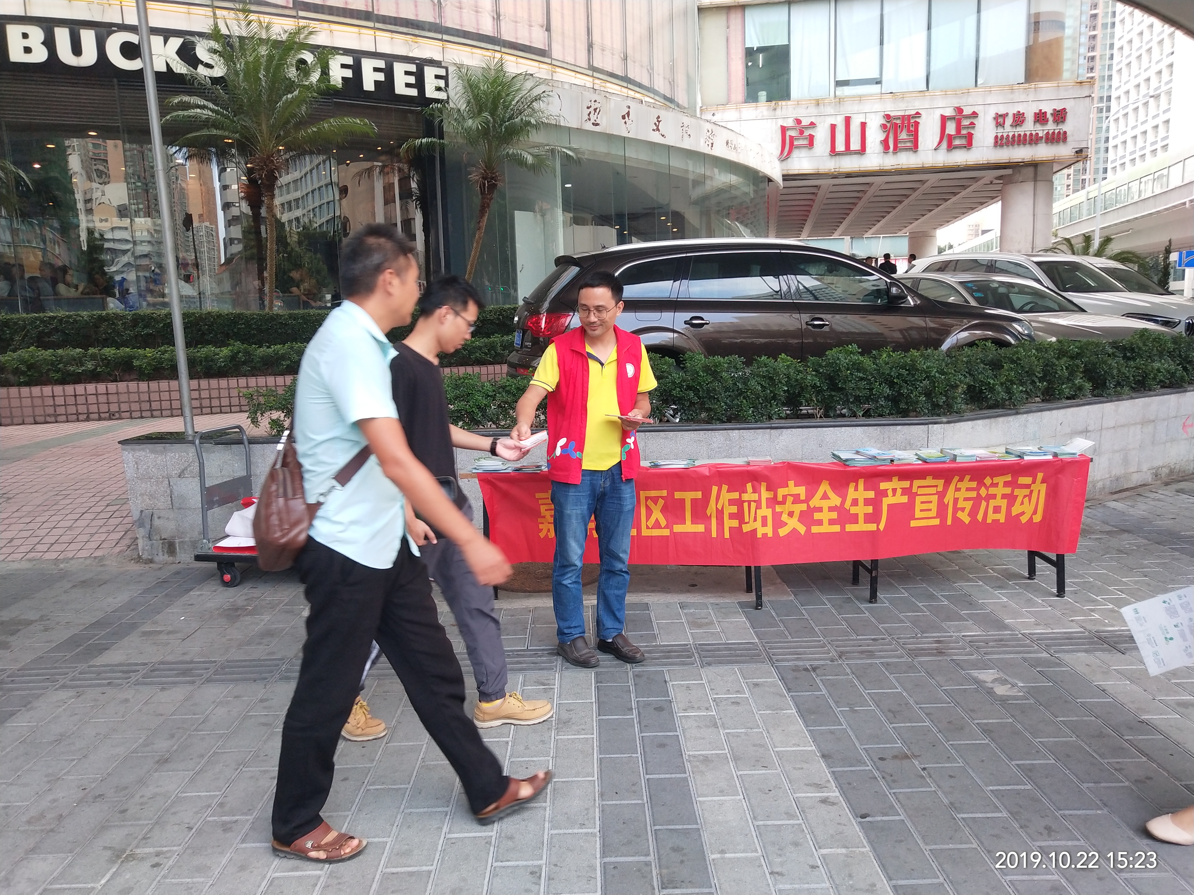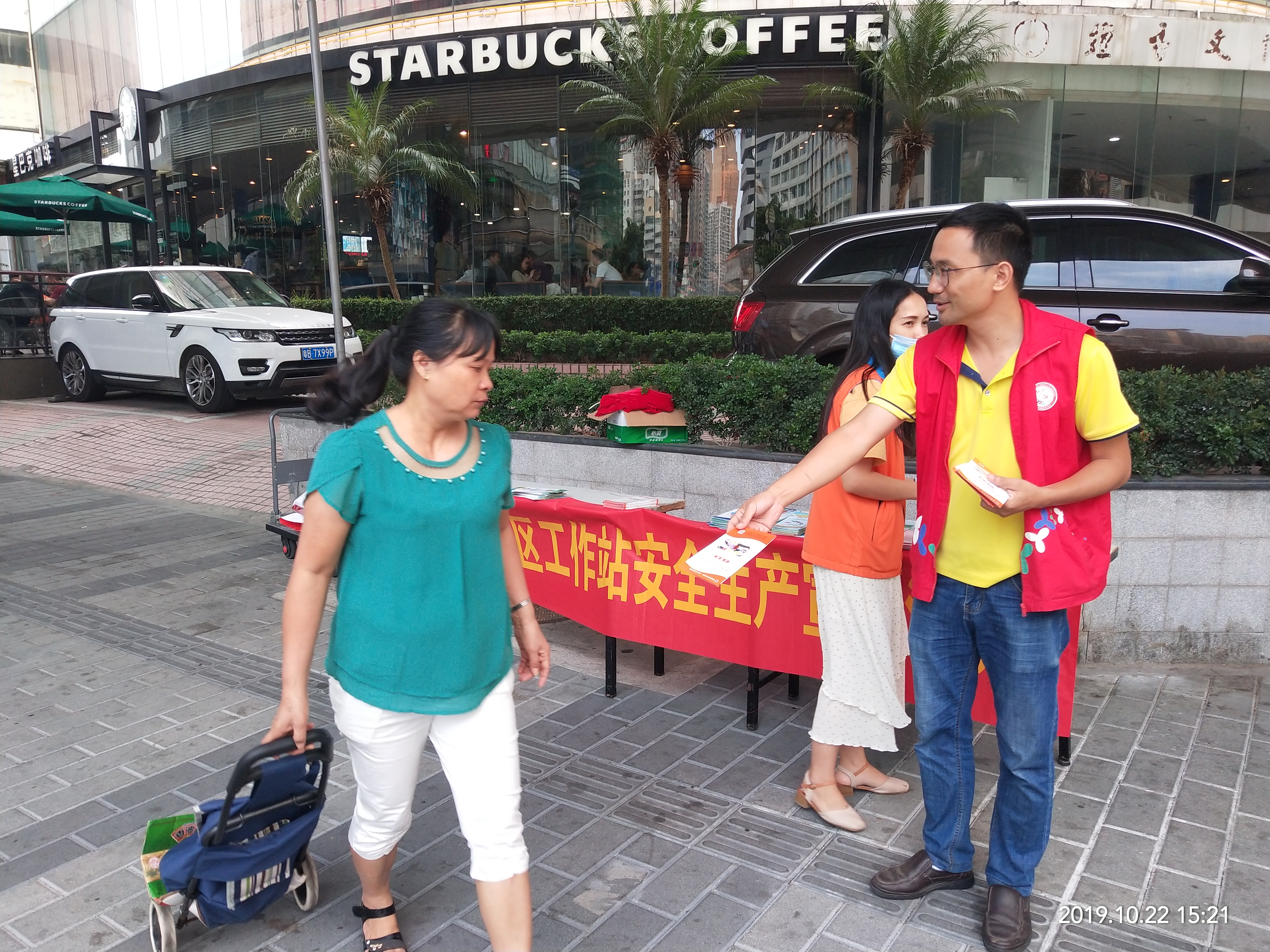 讯,10月22日下午,嘉南社区在社区重要交通路口开展嘉南社区工作站安全生产宣传活动,向路过的居民朋友发放宣传小手册等宣传资料。