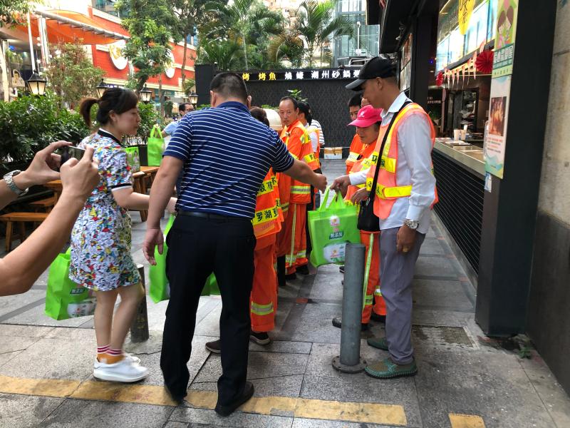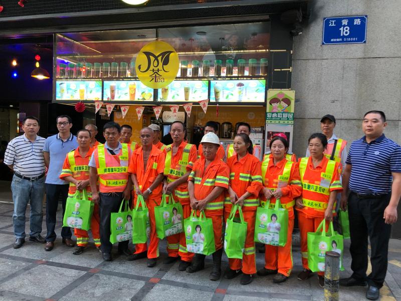 嘉南社区讯,结合10月26日环卫工人节,为落实2019年环卫工人节系列活动方案要求,2019年10月25日下午,嘉南社区党委联合月亮湾餐厅开展温暖和关爱环卫工人活动,街道城区治理办副大队长熊旺球出席关爱行动,餐厅负责人莫总为环卫工人购置了一批慰问品,为他们送上一份关心和问候,餐厅已为大家连续3年来提供爱心歇脚屋服务,免费提供热水、凉茶、急救药品等,用文明暖心行动感恩环卫工人为打造美好家园环境所付出的辛勤劳动。