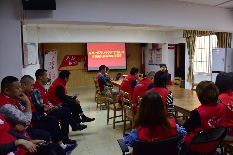嘉南社区讯,为营造优良廉洁工作氛围,嘉南社区于11月26日召开传达中共广东省纪律检查委员会信访举报指南会议。党委书记张宇向社区工作人员传达信访举报相关信息知识,明确各项工作标准,摆正社区工作纪律风气。