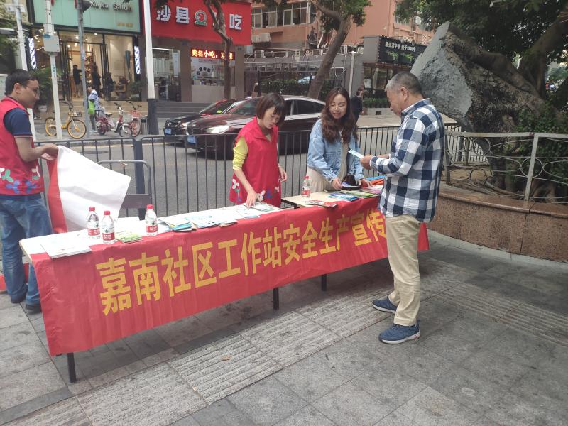 讯,11月26日,嘉南社区工作站在社区江背友谊路口开展安全生产宣传活动,向路过居民朋友派发安全生产相关宣传单张。
