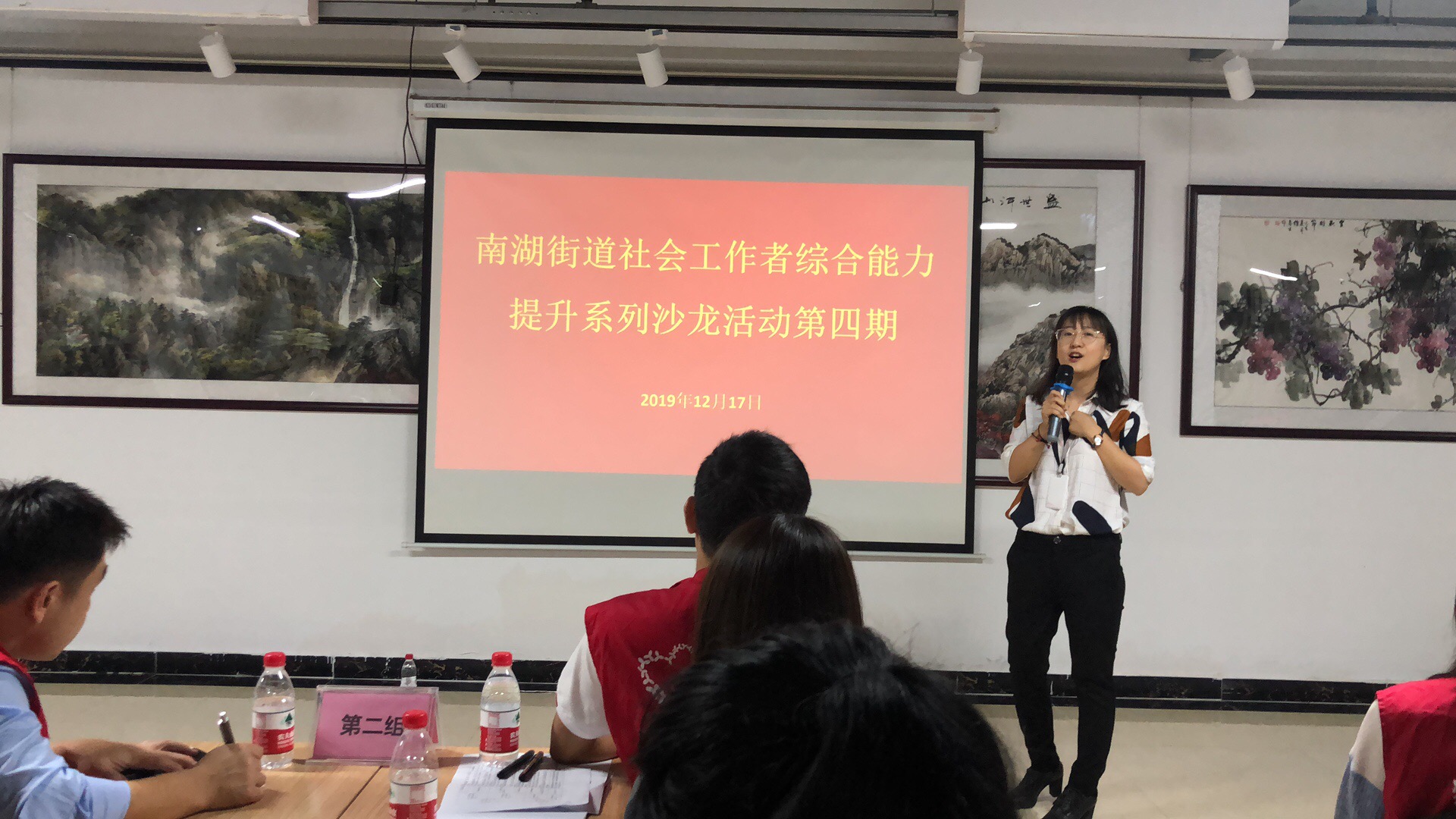 嘉南社区讯,12月17日上午,嘉南社区党群服务中心社工团队到罗湖社区党群服务中心参加南湖街道社会工作者综合能力提升系列沙龙活动第四期,进一步学习提升社工综合能力及各方面素养。