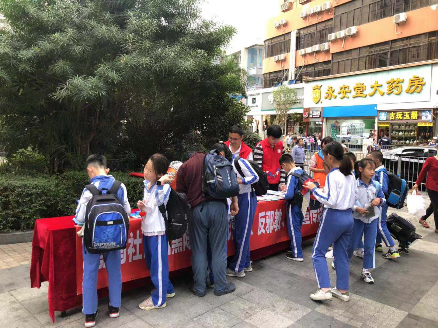 嘉南社区讯,12月17日下午,为加强社区居民扫黑除恶、反诈骗、反邪教、禁毒等相关意识,嘉南社区在街头开展相关宣传活动,向路过的居民朋友发放相关宣传资料,并做简单的知识案例讲解。