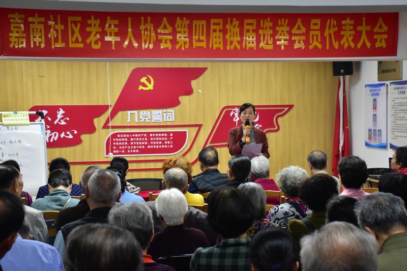 嘉南社区讯,为促进社区老年人参与社区各项建设活动,2019年12月26日下午,嘉南社区在社区工作站会议室召开老年人协会第四届换届选举会员代表大会,本次会议共有80余名老年人参会。会上,党委书记张宇致辞,表示对本次换届选举大会的支持及祝贺,祝福老年人协会越办越好,与社区共建并为丰富社区老人退休生活共同出一份力。