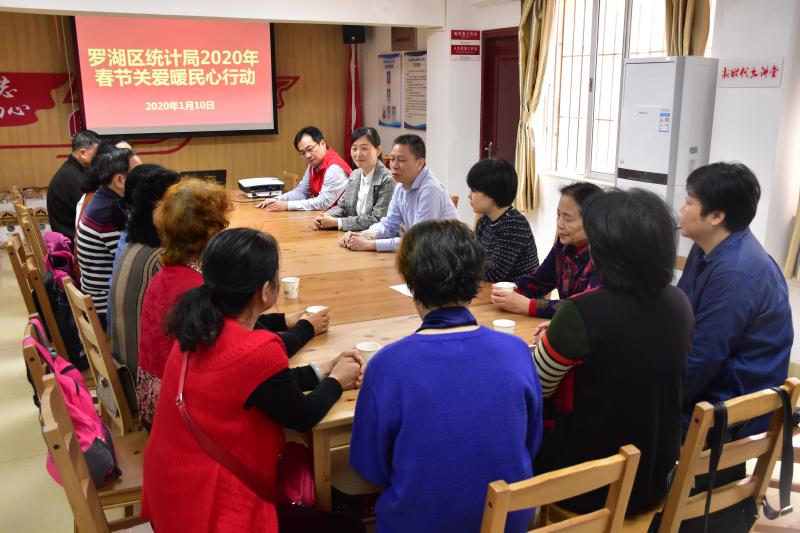 嘉南社区讯,新春送关爱,真情暖民心。2020年1月10日上午,罗湖区统计局在南湖街道嘉南社区工作站会议室展开春节关爱暖民心行动,此次活动邀请了社区老年人协会理事会成员及社区文体队伍骨干成员们参加。
