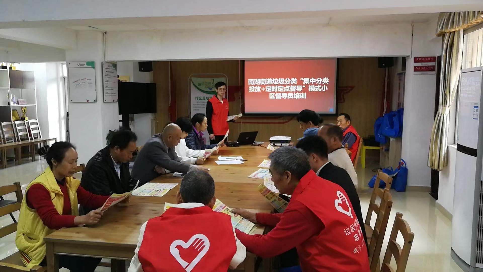 讯,为促进垃圾分类政策更好地实施开展,1月14日上午,南湖街道在嘉南社区开展了垃圾分类“集中分类投放+定时定点督导”模式小区督导员培训。