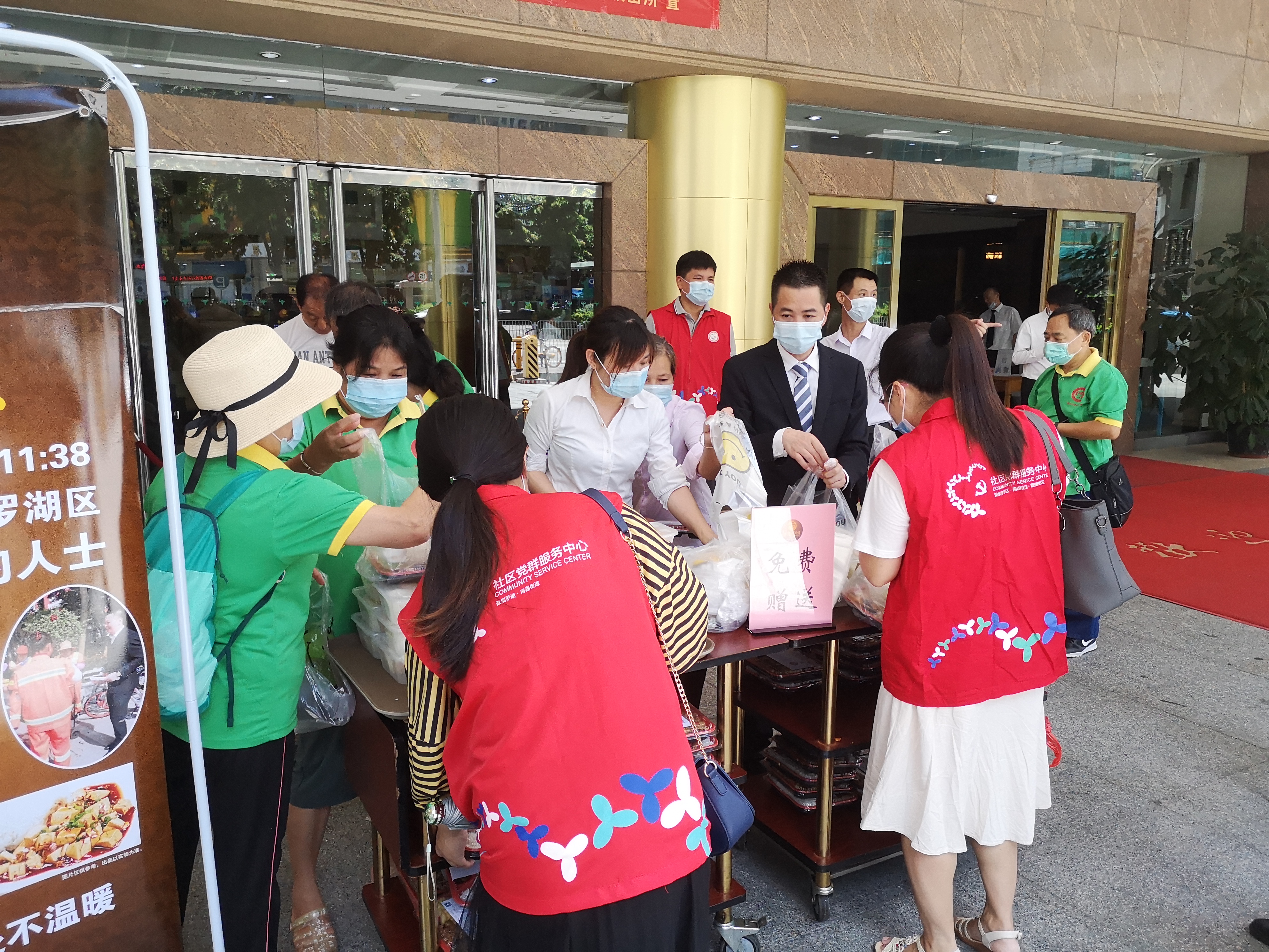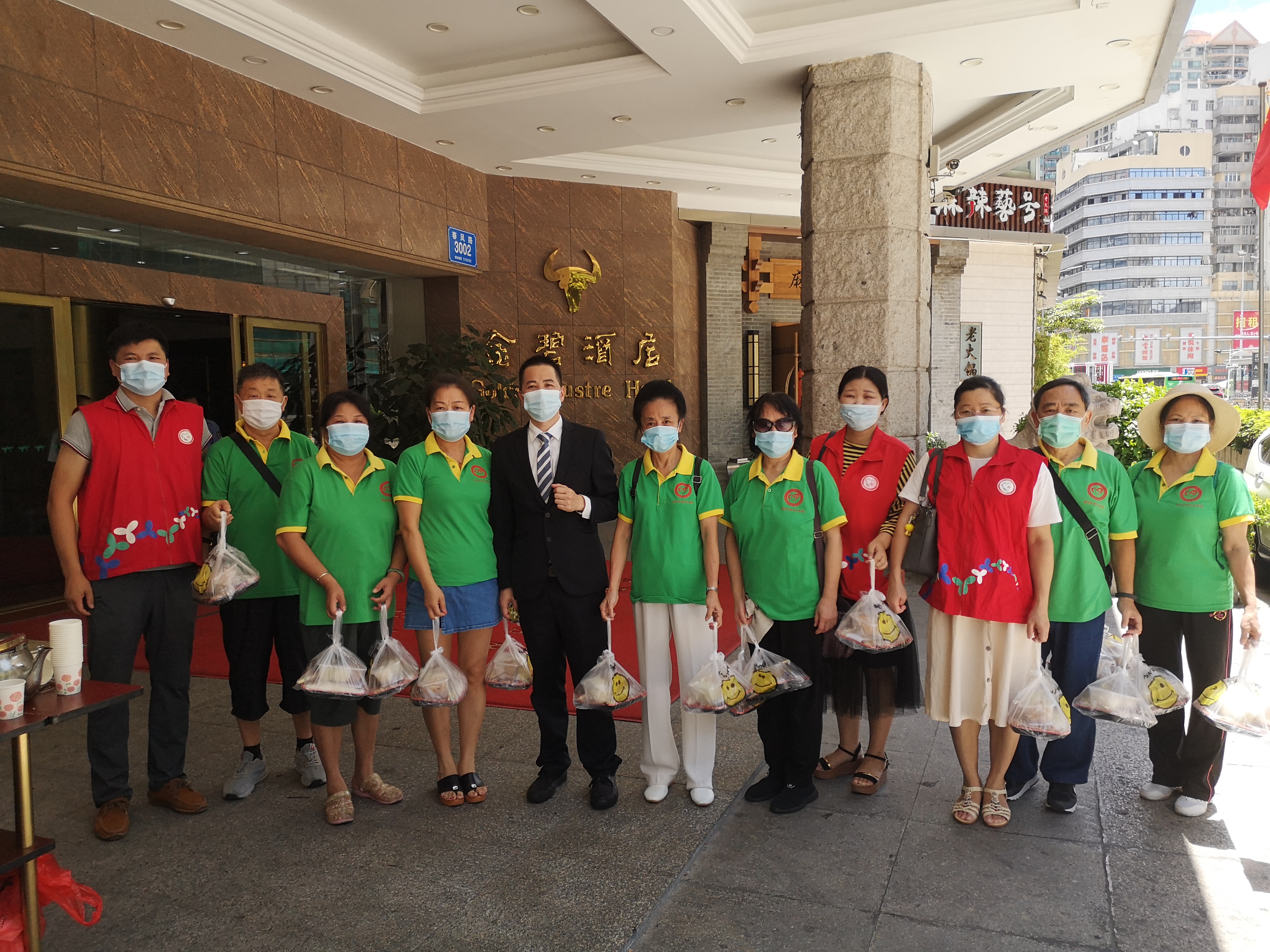 嘉南社区讯,7月5日中午,又逢农历初一十五,嘉南社区爱心酒店金碧酒店沿街向路人派发免费爱心素食盒饭。嘉南社区老年人协会志愿者们也参加了此次活动,分批为辖区独居老人送盒饭上门,让他们也感受到酒店的关心爱心及暖心。