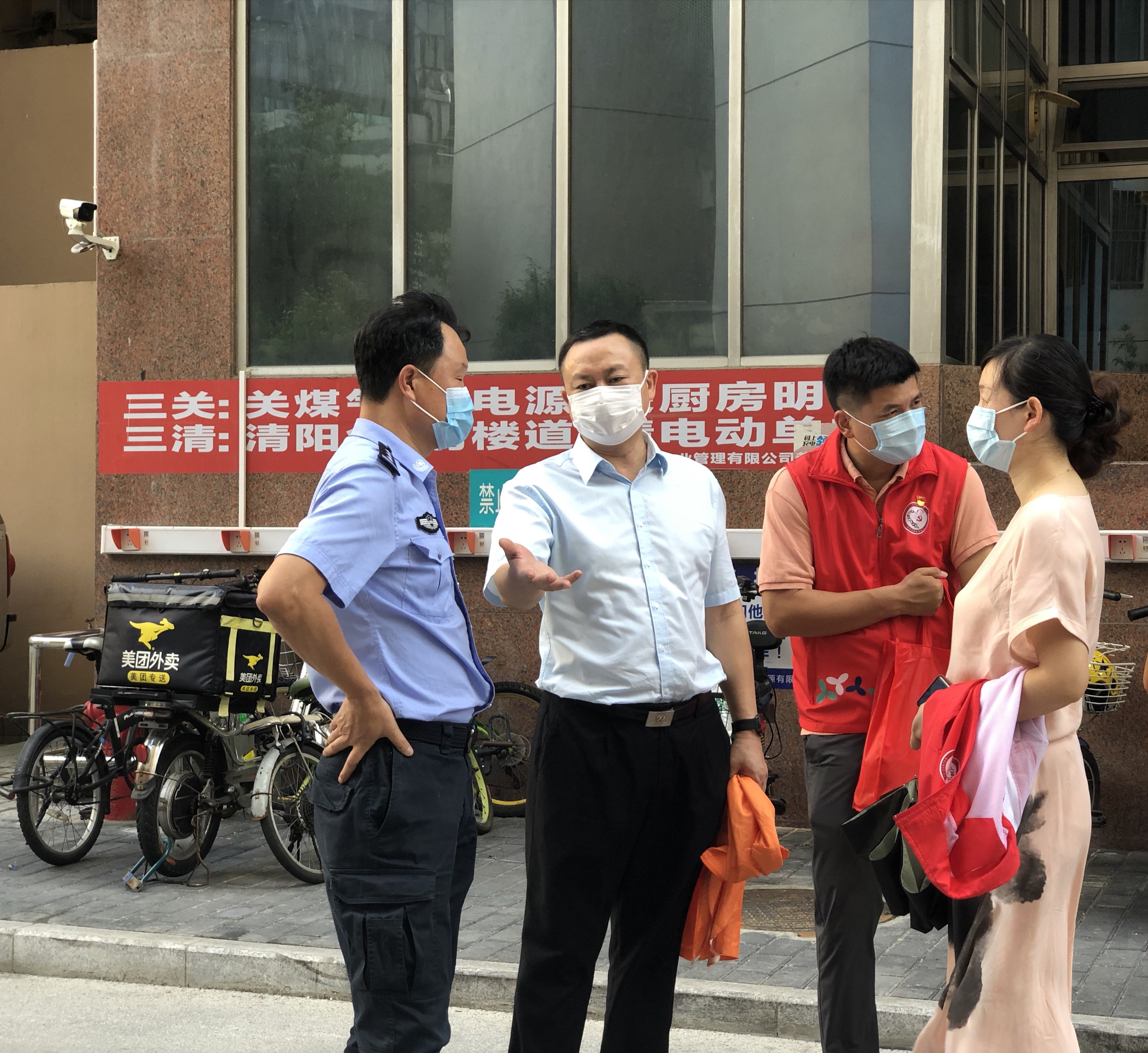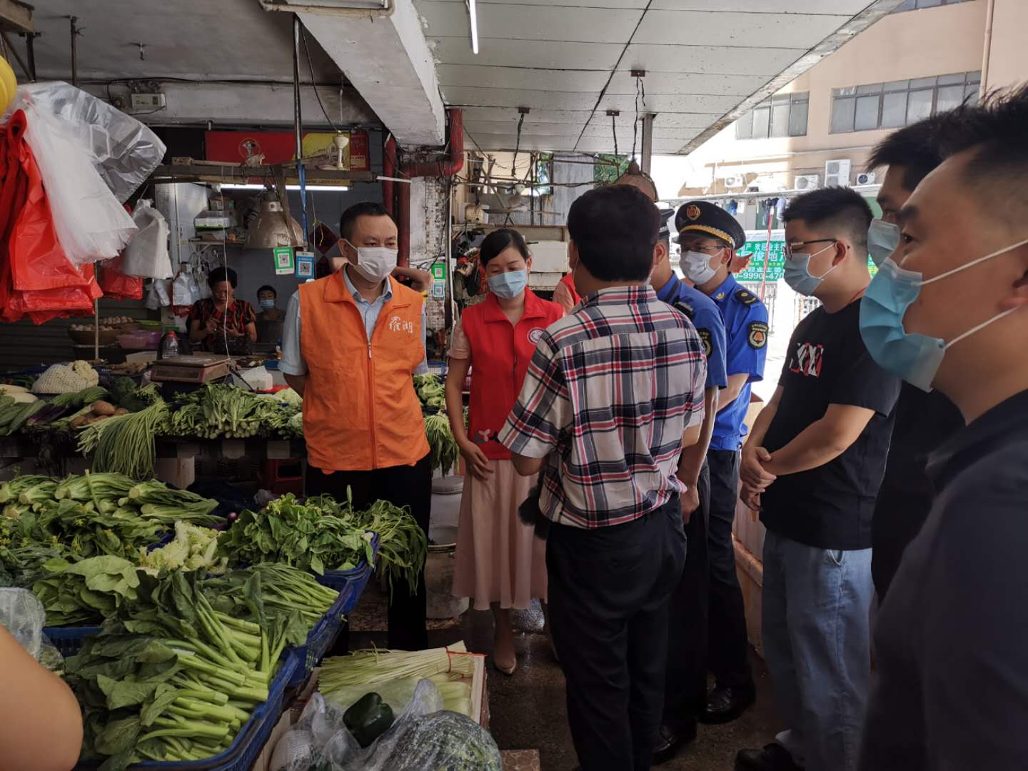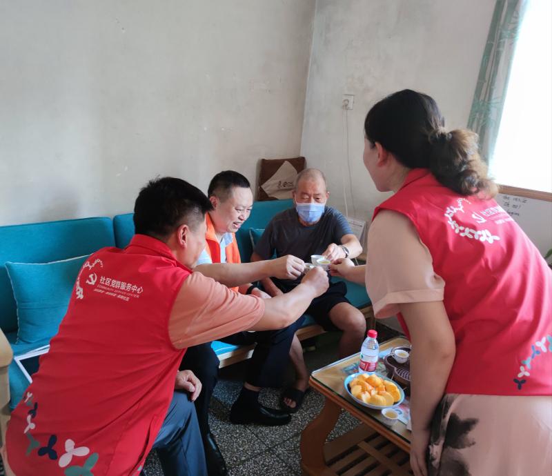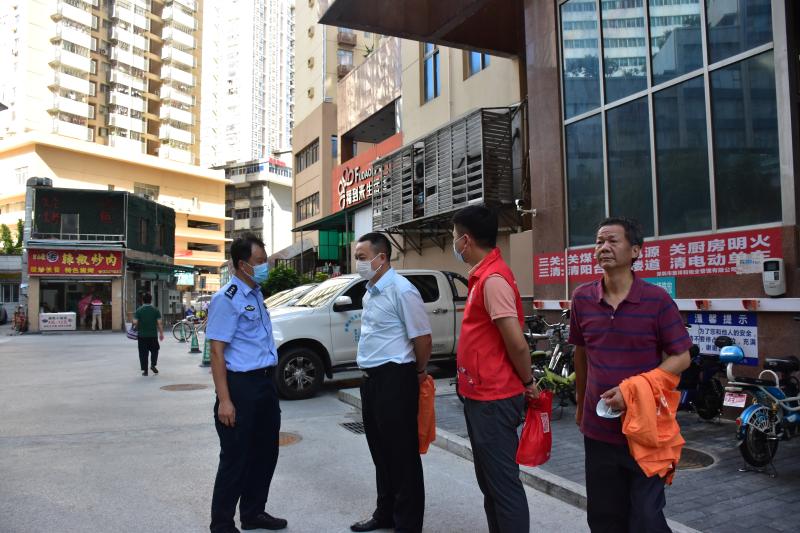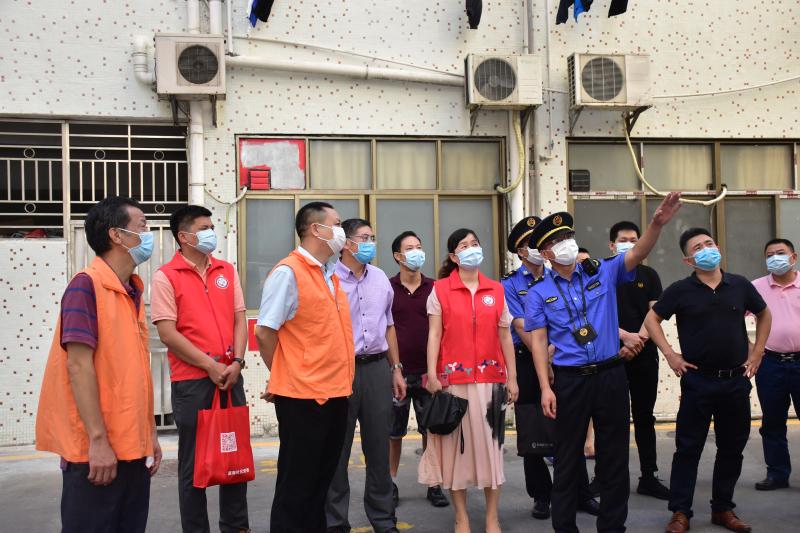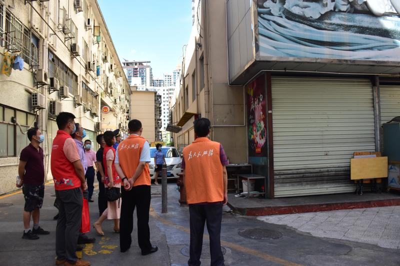 嘉南社区讯,7月28日下午,南湖街道纪工委书记黄建明、南湖街道党工委委员廖树标到嘉南社区开展驻点日活动。一是听取了嘉南社区党委班子近期的工作汇报,对下一步工作提出了新的要求。二是督导执法队、公共安全办、物业管理处对“惠利通肉菜市场”市容环境、安全生产等问题现场督办,要求社区协调各方,完善整改方案。三是实地察看“民微”工程项目,感谢荣兴大厦管理处对社区工作的支持,管理处蔡主任对街道的“民微”工程赞不绝口。四是抽查桑拿按摩休闲场所“黄金水汇”,督导经营单位落实人员登记等防疫措施,并协调警务室林警长通报派出所特航组。五是走访解放前入伍老兵张伯,代表街道党工委向老兵致敬,并送上“八一”建军节的慰问。张老伯感动得向黄书记敬军礼,亲切地与大家一一握手,感谢大家的关心。
