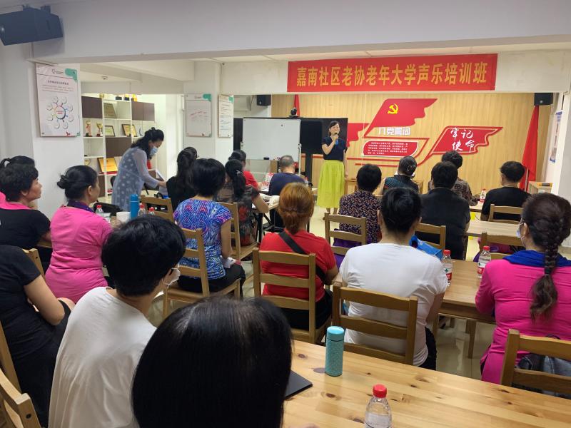 嘉南社区讯,推进创文工作开展,展示城市文明新风,促进广大居民积极参与创文工作,共同营造和谐、文明、健康的城市氛围,9月24日下午,嘉南社区党委组织开展老年大学声乐培训班,本次课程由社区声乐爱好者周琪主讲。首先,由嘉南社区党委书记张宇致辞开场,张宇同志表示非常感谢来自社区的热心志愿者们支援社区开展创文工作,有志愿者的参与建设,社区将会变得更美好。随后,周老师开始了她的声乐课程,对各位学员进行发声指导,让大家呼气吸气练习声乐基本功。本次课程,丰富了社区志愿者们的文化生活,搭建了学习交流的平台,加强了社区的文化建设,为创建文明和谐社会做出应有的贡献。