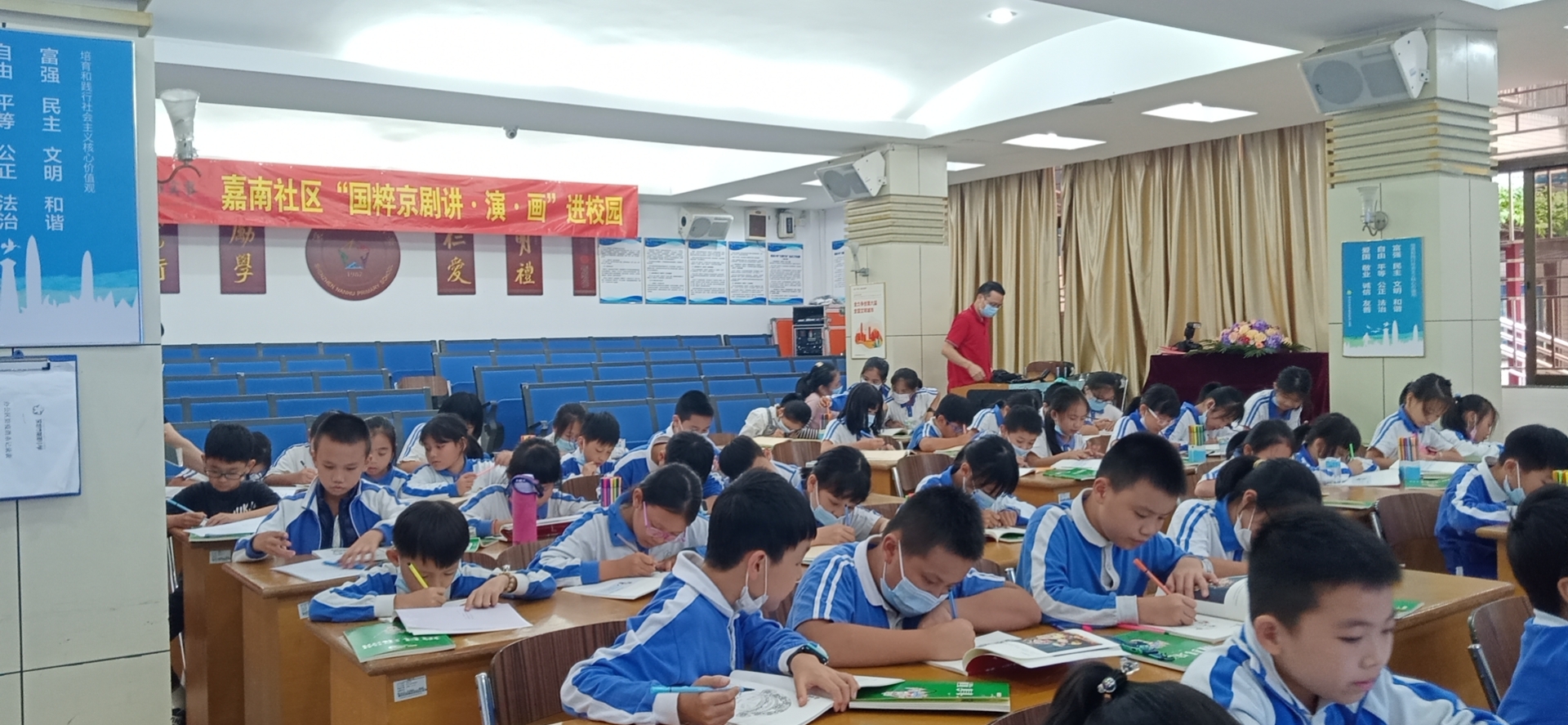 戏曲艺术博大精深,这次“嘉南社区国粹京剧讲·演·画进校园”活动,通过戏曲这种民族特色艺术表达形式,给同学们带来了美的艺术享受,让学生了解了京剧,感受了京剧的魅力,激发了同学们热爱传统文化的热情。