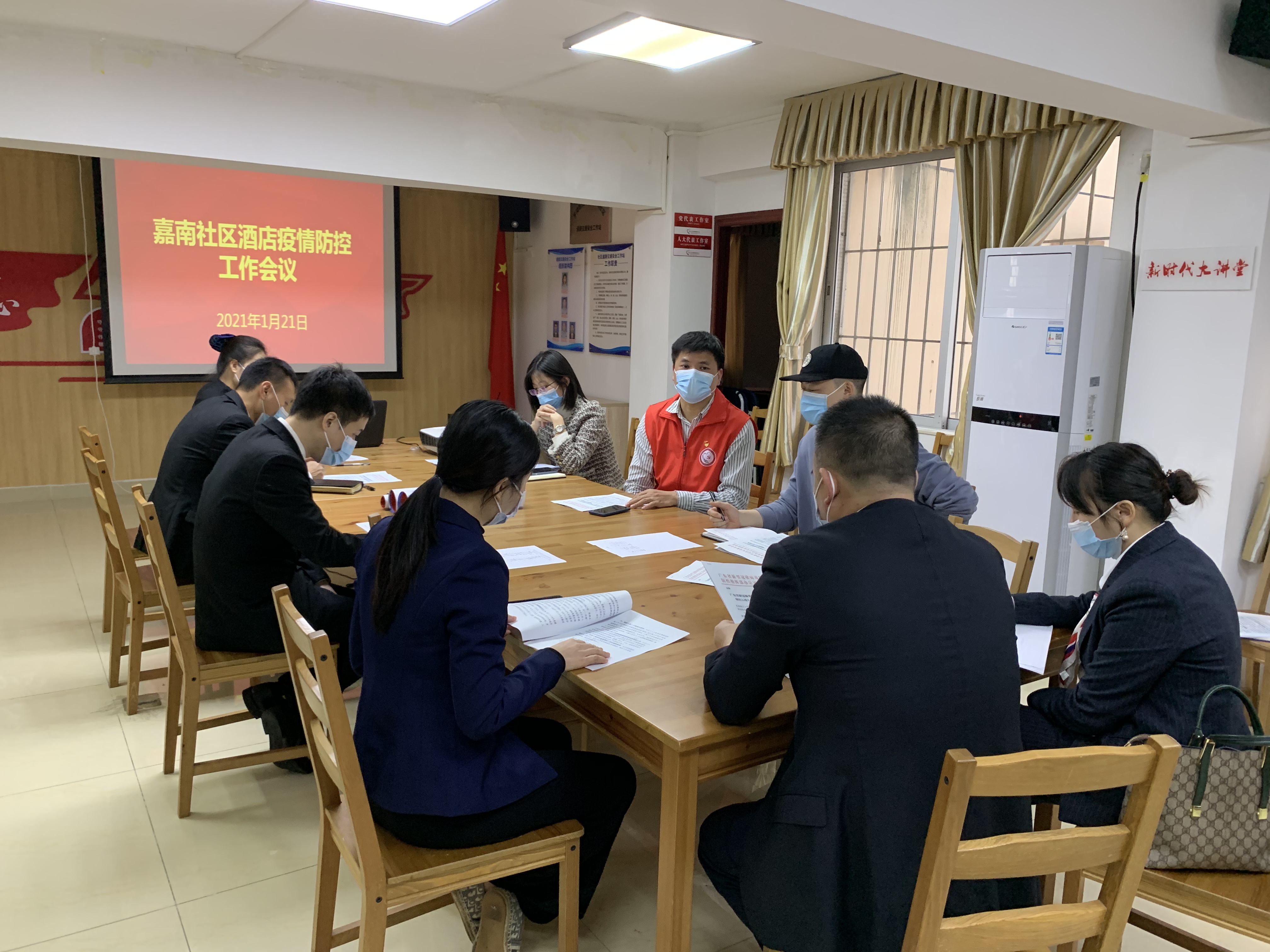 嘉南社区讯,2021年1月21日,为加强酒店行业防控工作。今日下午,嘉南社区党委针辖区酒店行业召开疫情防控工作部署会。传达了《关于做好入境人员“14+7”健康管理工作的通知》工作部署,辖区酒店行业负责人等参加会议。一是强调入境人员(含国外和港台)14天集中隔离后,需采取7天居家健康管理,居家不外出,入境后第21天进行一次核酸检测。辖区酒店前台如有接待到此类人员,必须第一时间上报社区,“三位一体”成员会上门做好居家健康管理的告知工作。二是再次宣传企业从业人员留深过节倡议,并传达国家卫健委及深圳市有关返乡防疫政策。三是强调酒店要高度重视,认真履行疫情防控主体责任,严格落实消毒、测量体温、佩戴口罩、查验行程码、健康码等防疫措施。不承办年会、聚餐,严控会议规模并做好防疫预案。