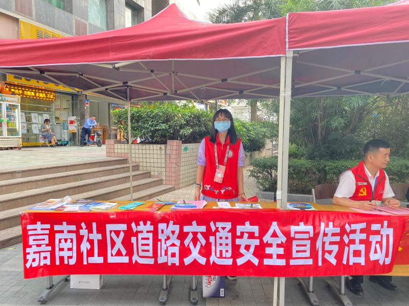 讯,4月19日下午,嘉南社区在辖区南湖小学门口设摊位宣传道路交通安全,向过往学生及其家长宣传道路交通安全,普及道路交通安全重要性。
