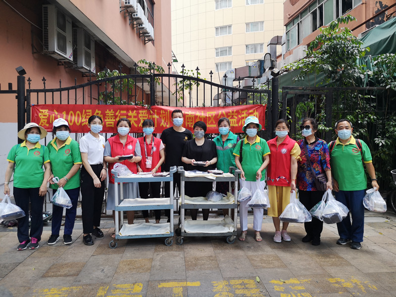 5月12日(农历四月初一),为弘扬社会优秀道德风尚,在嘉南社区党委的支持下,嘉南社区老年人协会和社区党群服务中心联手开展“爱心100绿色善行关爱计划公益活动”系列之爱心接力送免费素食午餐活动。该活动与金碧大酒楼赠送免费午餐善举活动同步,也坚持了很长一段时间。