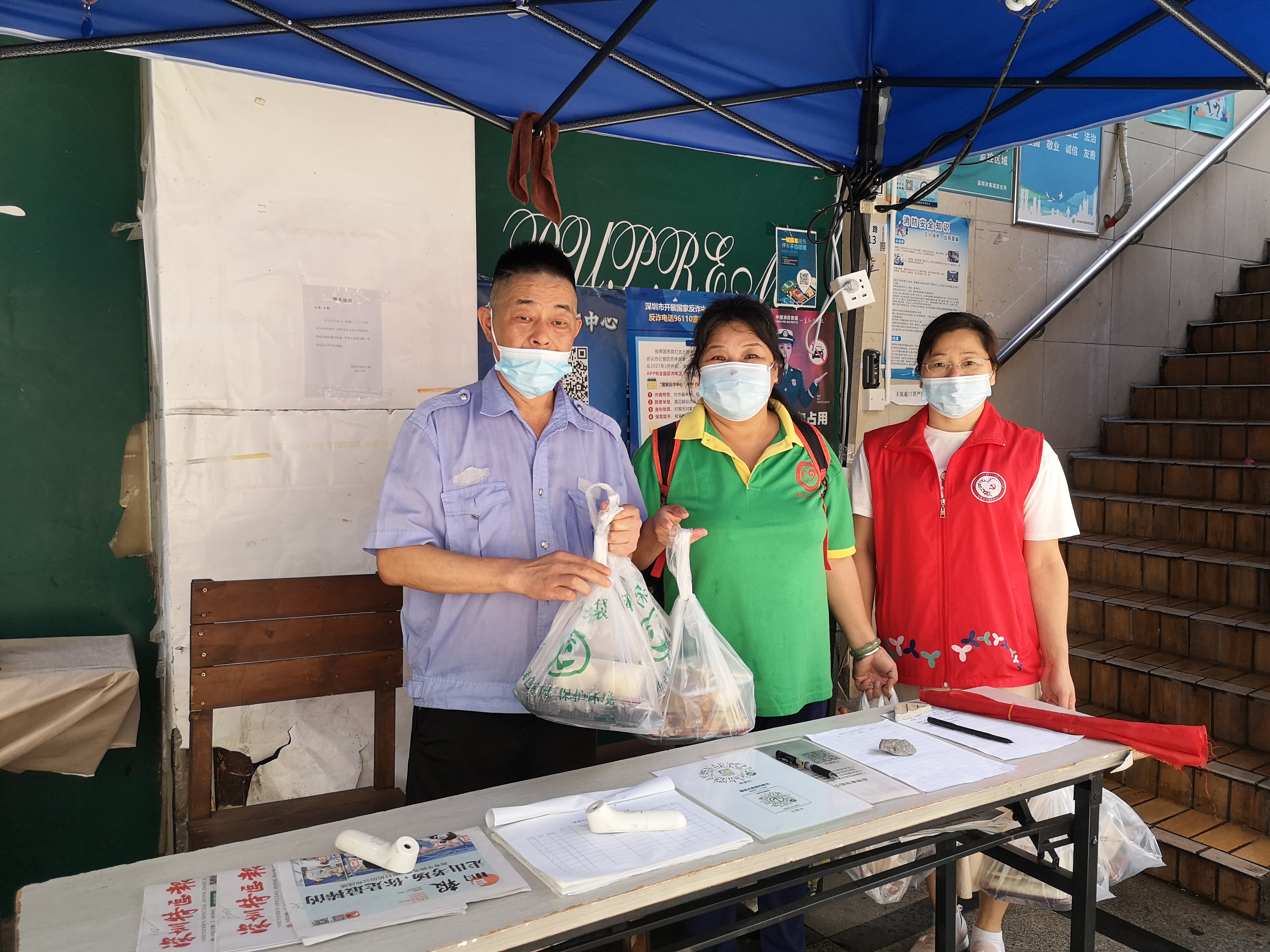 现场派送结束后,10多名老年志愿者和社工提着20份素食午餐,以三人一组分派到物业小区的高龄长者家中。领到素食午餐的长者感动地说,下这么大的雨还送来饭盒,真的太感谢你们了。