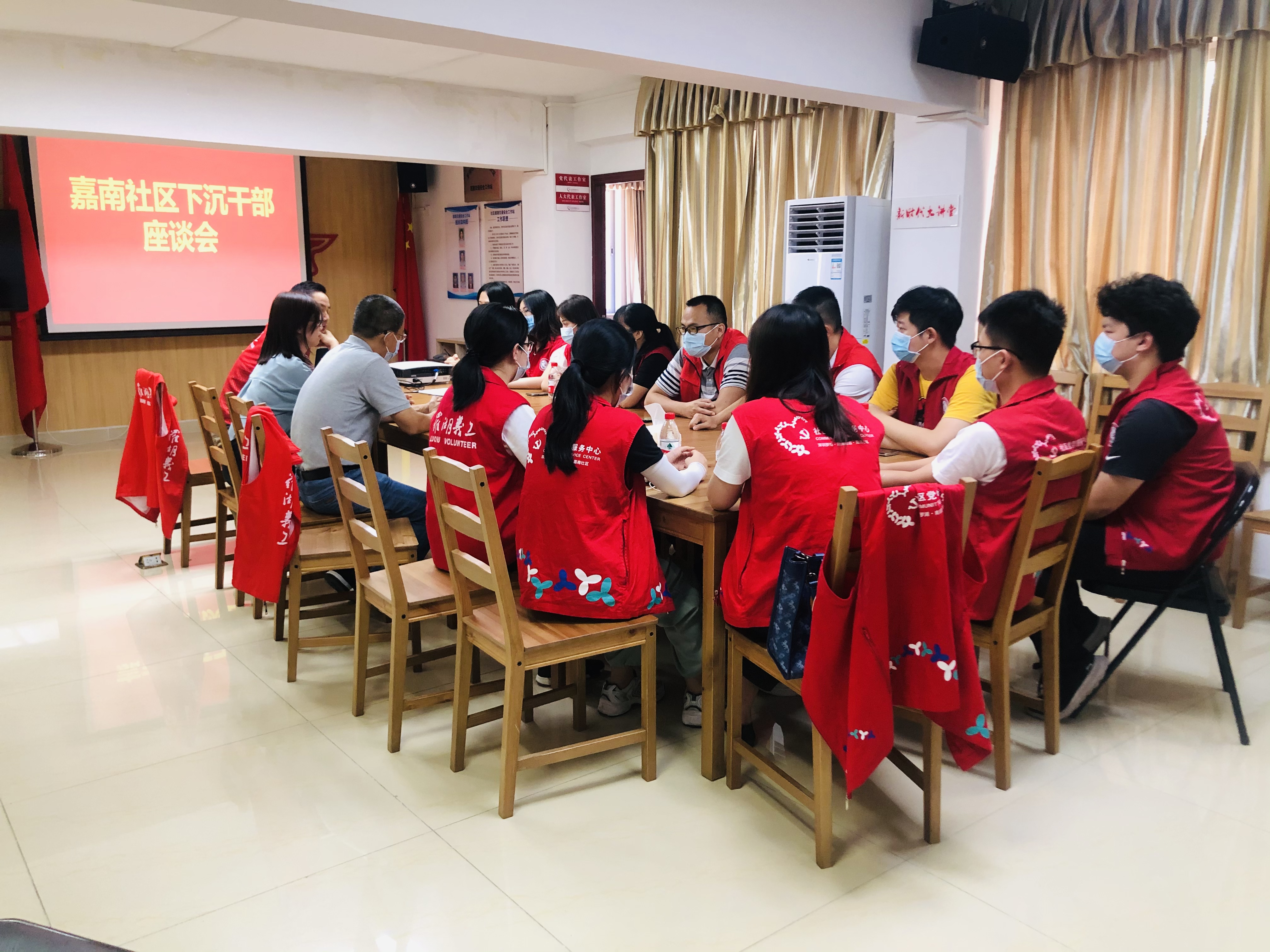 嘉南社区讯,7月5日下午,办事处二级调研员、嘉南社区第一书记许海彤到嘉南社区召开区下沉干部座谈会。许书记代表办事处对大家在社区防疫工作紧张时刻,及时到来,积极工作表示感谢。这段时间区派下层干部队伍展现的精神面貌,工作的仔细认真,服务居民的细致入微,都是社区学习的榜样。感谢带队组长民政局干部涂磊同志、副组长区纪委干部张毅同志的组织协调,出色的在最快的效率整合了分别来自四个不同单位的队伍。区派下沉干部们表示感谢组织信任给予这个锻炼的机会,这段经历是他们工作和生活都是宝贵的经历。