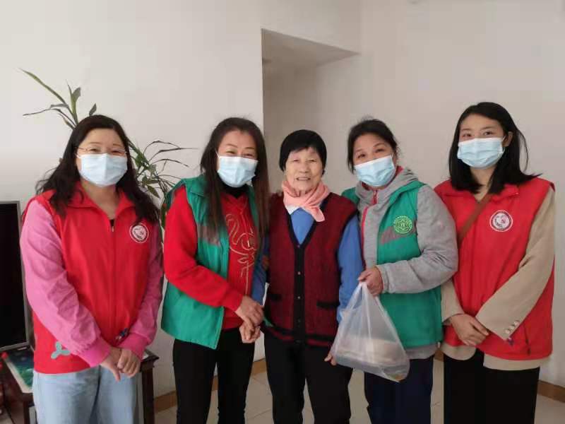 现场派送活动结束后,老年志愿者和社工继续下半程的爱心接力活动。老年志愿者和社工分成两组走进物业小区,把现场认领的20多份素食午餐送到独居老人和高龄长者的家中。