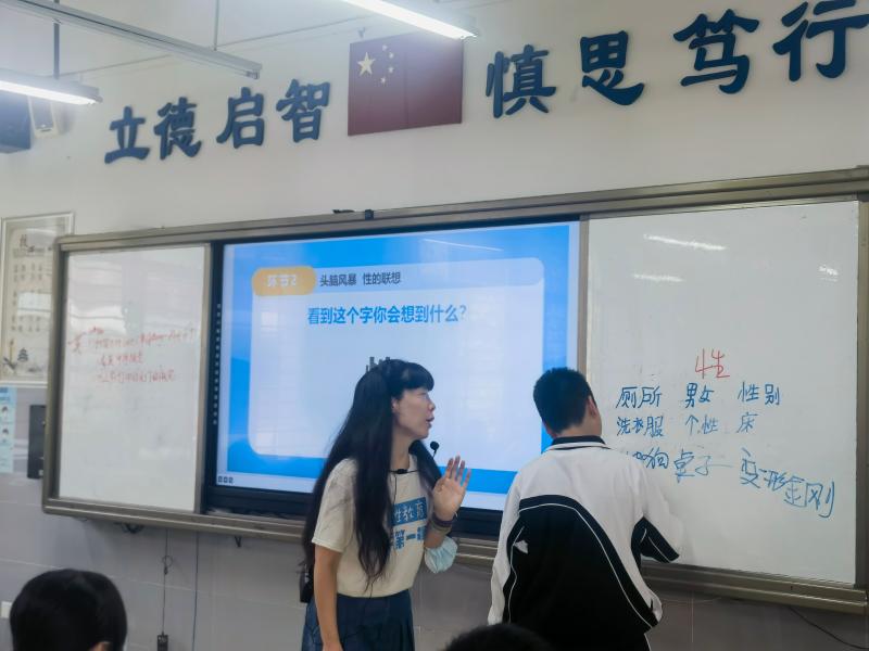 活动采用“课程讲解+场景视频+知识竞答”形式开展。讲师首先用成语接龙的形式进行热身互动,打开话匣子,然后引导学生一起进行头脑风暴——性的联想,邀请学生积极分享自己的感受。接着播放了动漫视频《了解性教育》,进行了性安全教育知识竞答和性的T型台讨论,学习了解性安全教育知识。
