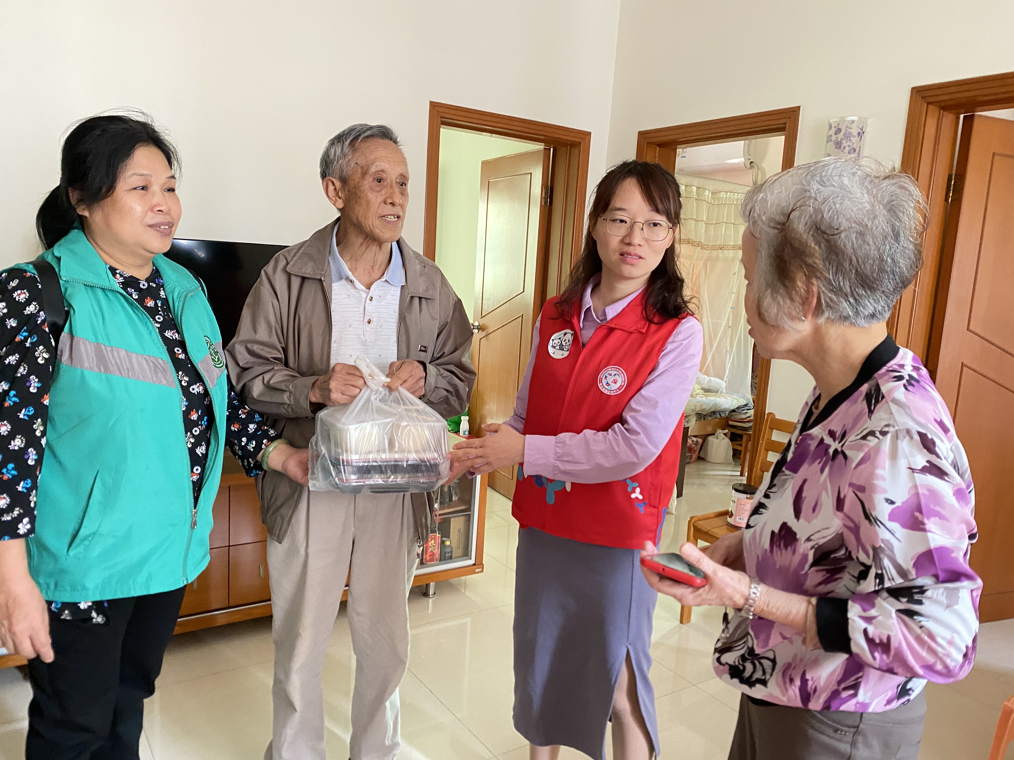 活动分为两组同步进行,一组在路边送餐给环卫工、外卖小哥、保安等人,另一组社工和老协志愿者将打包好的午餐送到社区长者家中,为他们送去社区的温暖关爱。同时了解老人近期的生活状况、身体情况以及在日常生活中是否存在困难,并叮嘱他们好好保重身体,积极乐观的面对生活。老人们纷纷表示,感谢社区的关爱,被社区记挂真的很感动。