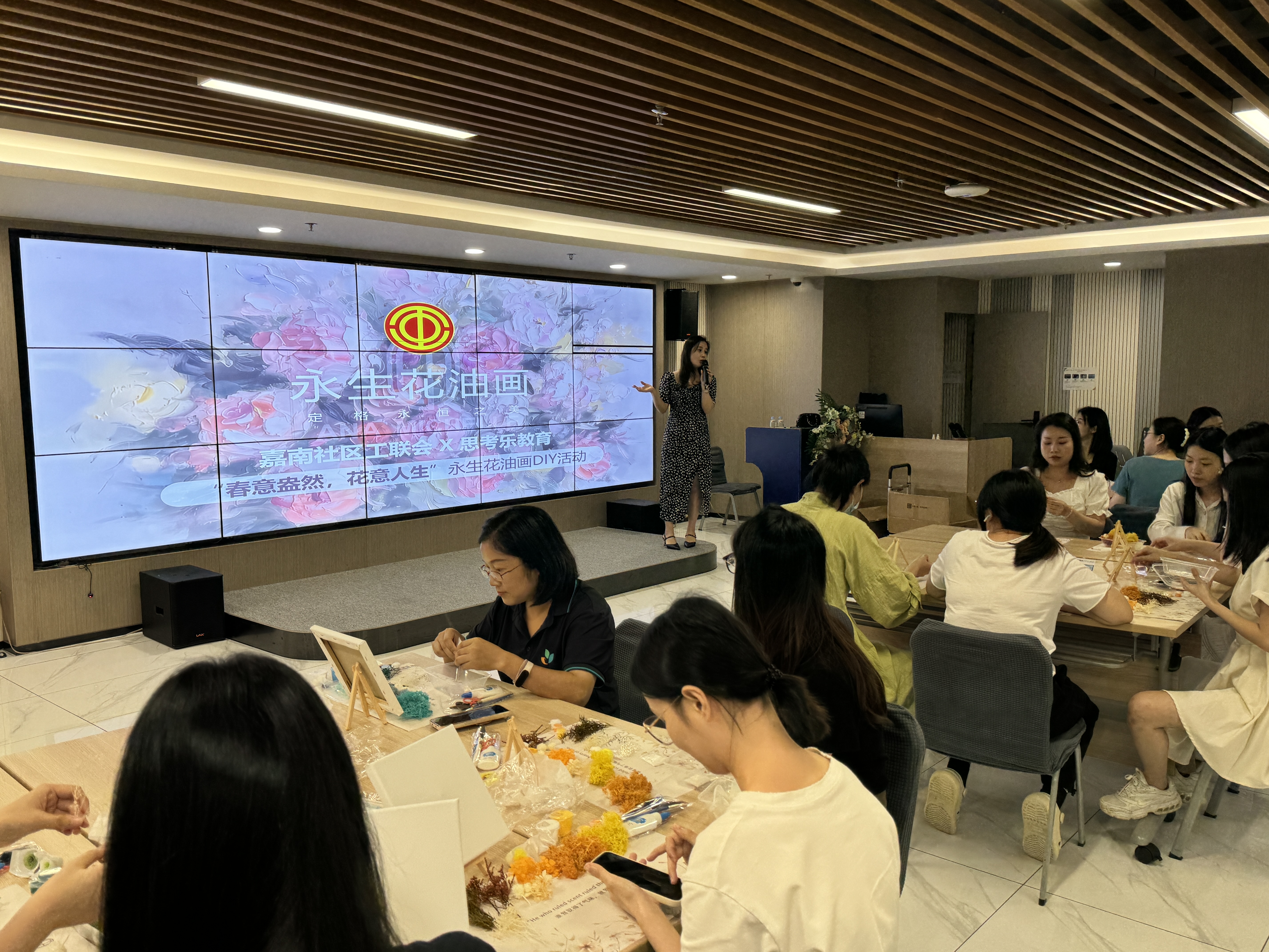 罗湖家园网讯,微风渐暖、花香渐浓,为丰富职工的精神文化生活,提高艺术修养和生活乐趣,营造良好的工会服务氛围,2024年5月29日下午,嘉南社区工联会联合思考乐集团开展了一次“春意盎然,花意人生”永生花油画DIY活动。