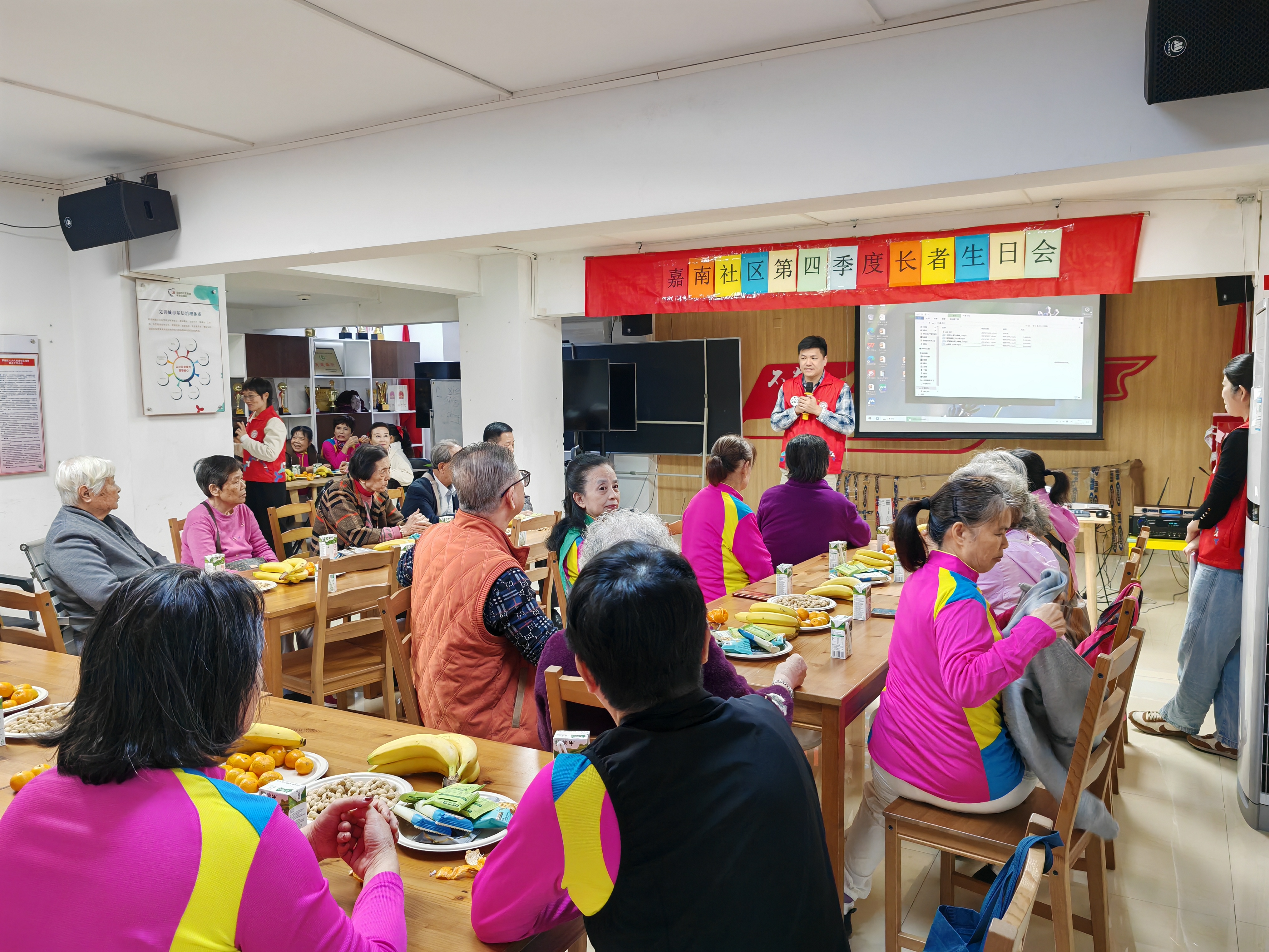 罗湖家园网讯,为了弘扬尊老爱老的精神,关心关爱辖区老年人,嘉南社区党群服务中心邀请辖区20余位老人在社区活动室开展了第四季度长者集体生日会。