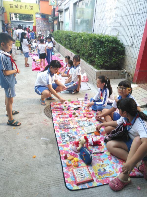 活动开始前,在工作人员的指引下,小朋友们摆设好自己的摊位,放上自己家中带来的一些玩具、礼品,准备以低价或交换的形式处理给其他有需要的人,提高闲置物品的使用率。活动一开始,就吸引了大量的居民围观,很多居民也积极购买摊位上的物品,与小朋友们形成互动,为现场带来热闹融洽的气氛。