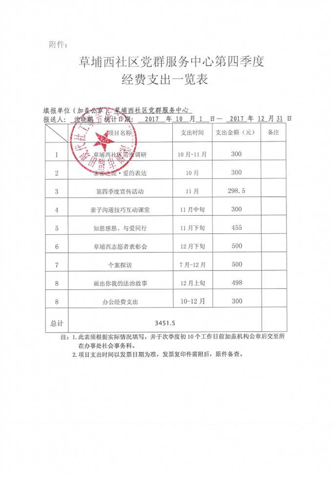 草埔西社区党群服务中心2017年第四季度经费支出一览