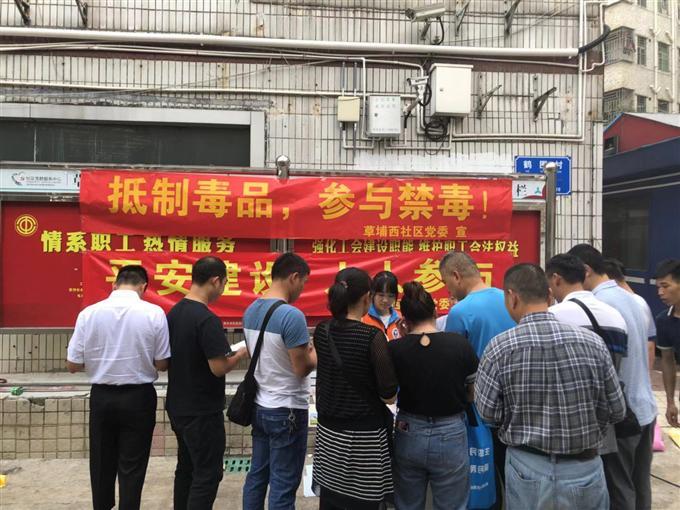 为提高全民“识毒、防毒、拒毒”的能力。2018年11月01日下午,由水河街道平安建设部牵头组织草埔西社区工作站在草埔西社区联合开展了一场以 “抵制毒品,参与禁毒”为主题的禁毒宣传活动。