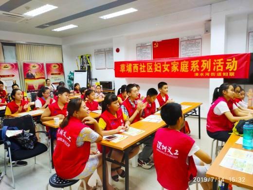 2019年7月14日下午,在草埔西社区党委的领导下,社区党群服务中心社工队,在学生暑假期间开展家庭及亲子志愿者培训--垃圾分类宣传活动。