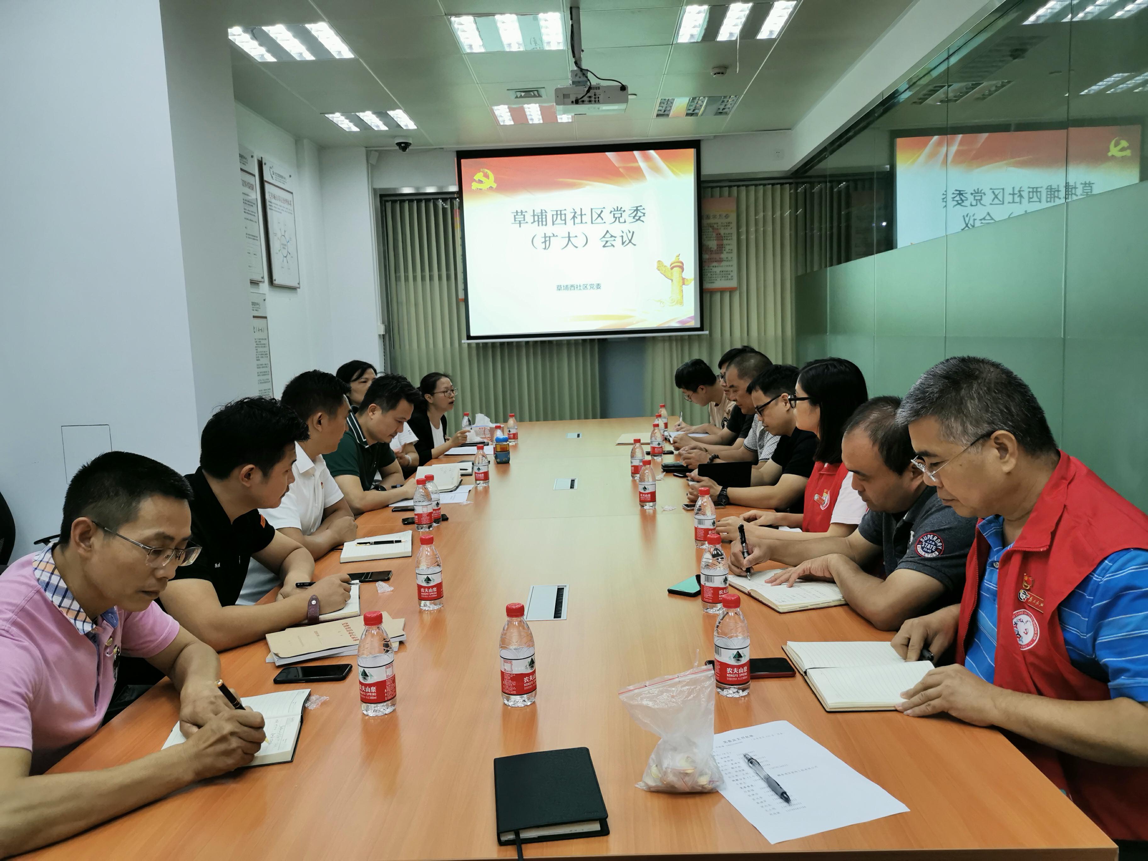 8月1日下午,草埔西社区党委召开党委会,会议由社区党委副书记张佩芬主持,全体社区党委委员及各支部书记参加及组织员参加。