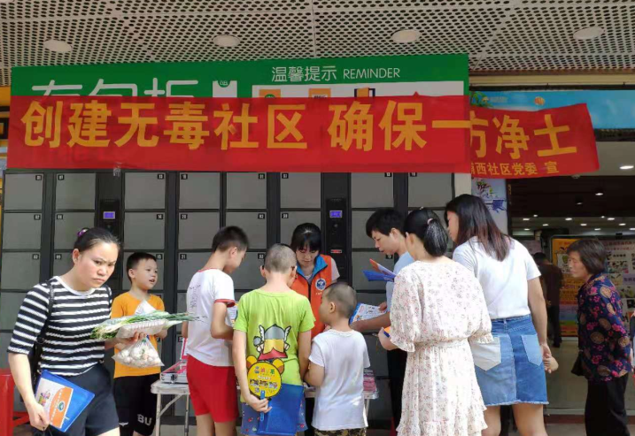 为提高社区居民的禁毒意识,2019年8月6日下午,在在草埔西社区人员密集的乐百家超市门口开展了一场“创建无毒社区确保一方净土”禁毒宣传活动。