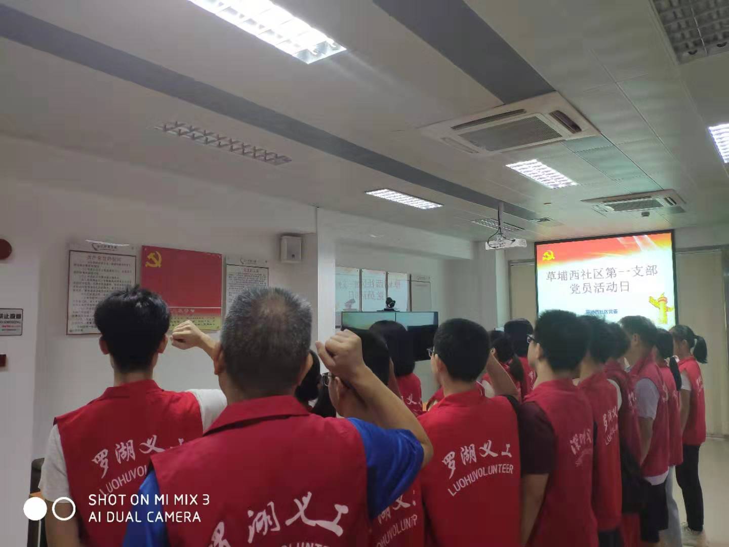 首先,草埔西社区第一党支部全体党员在社区党群服务中心会议室,面对着党旗庄严宣誓入党誓词,唤醒入党时的初心,增强党员意识、宗旨意识。