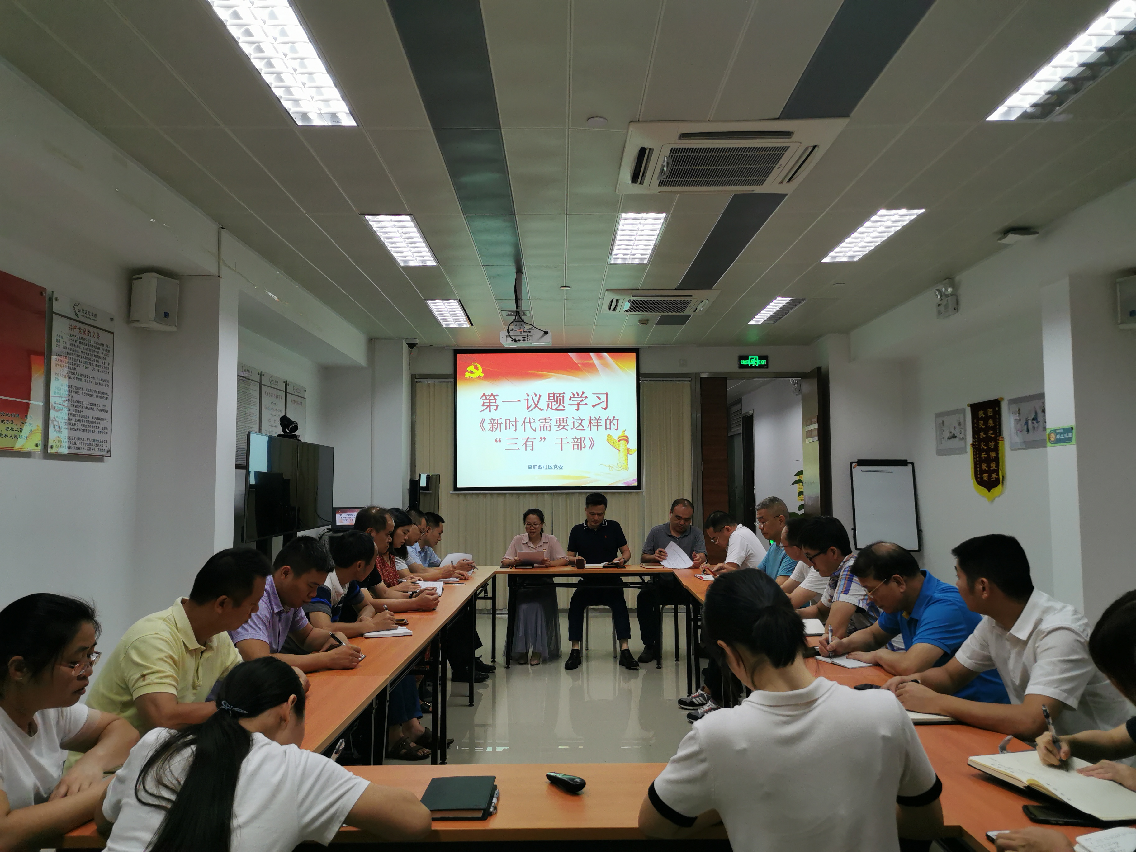 首先,党委副书记张佩芬组织大家一起进行“第一议题”学习,本次学习主题是《新时代需要这样的“三有”干部》会议要求,各工作人员会后积极进行学习,人不以规矩则废,党不以规矩则乱,作为社区工作者一定要做好带头作用。