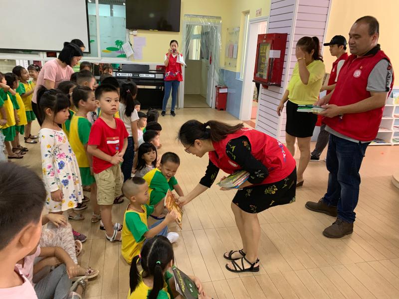 为了加强社会主义核心价值观宣传工作,加强对辖区未成年人的爱国主义教育,提升未成年人思想道德建设,同时,表示对辖区幼儿的关心,培养幼儿的阅读习惯,草埔西社区党委和社区妇联联合,由区党代表王爱萍、张佩芬,草埔西社区党委书记邓新锋,草埔西社区党委副书记蓝远香以及党支部书记于9月5日走访辖区5家幼儿园,进行赠送爱国主义教育、幼儿安全宣传和垃圾分类宣传教育等内容的绘本。