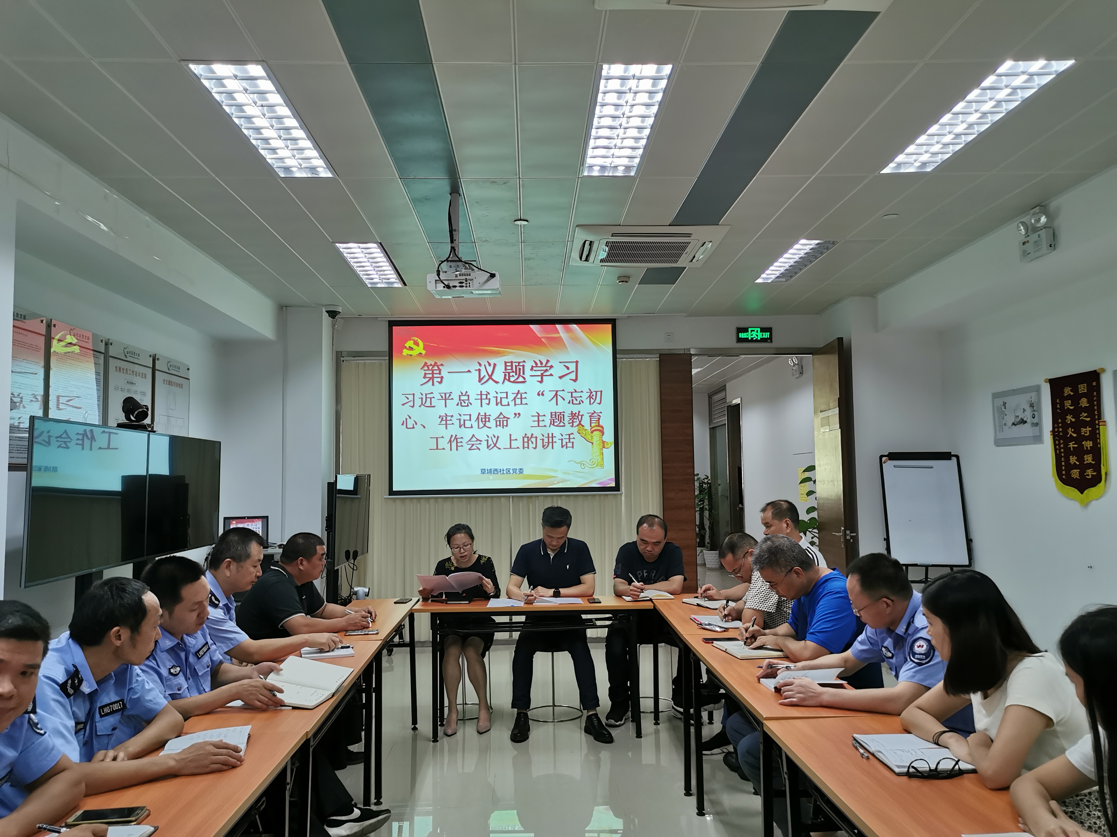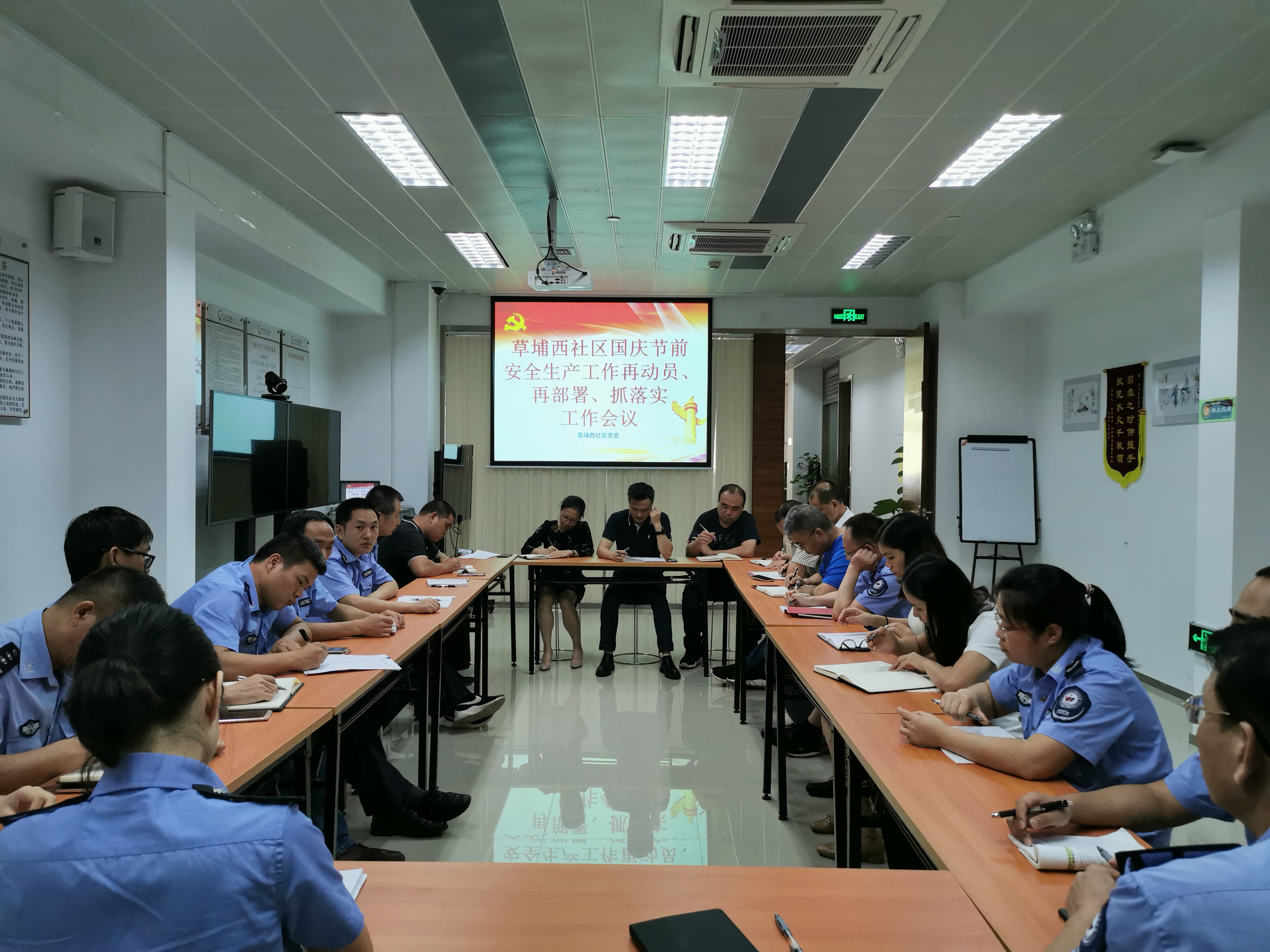 9月17日下午,草埔西社区工作站召开工作会议,会议由社区党委书记邓新锋主持,全体社区工作人员参加。