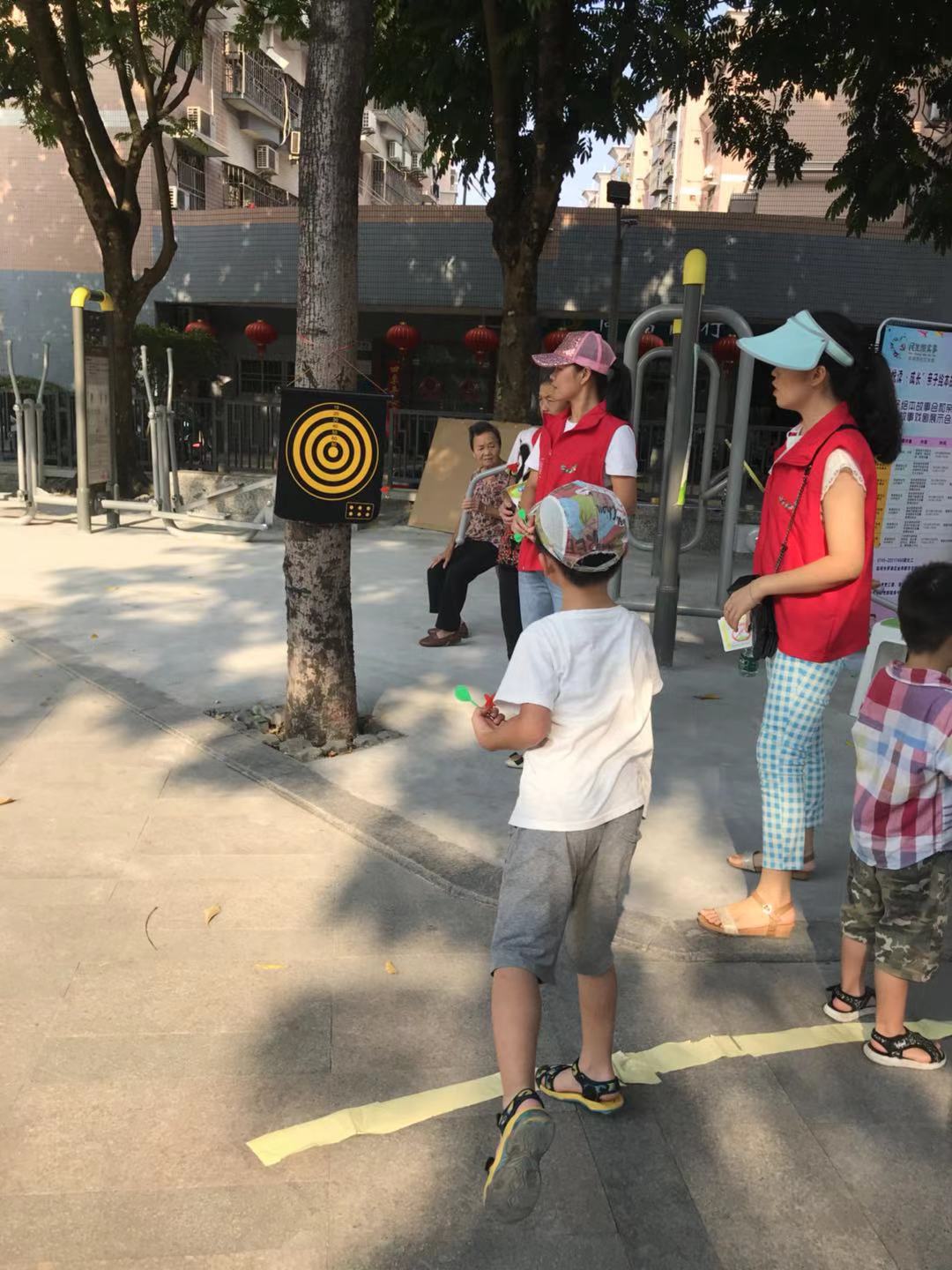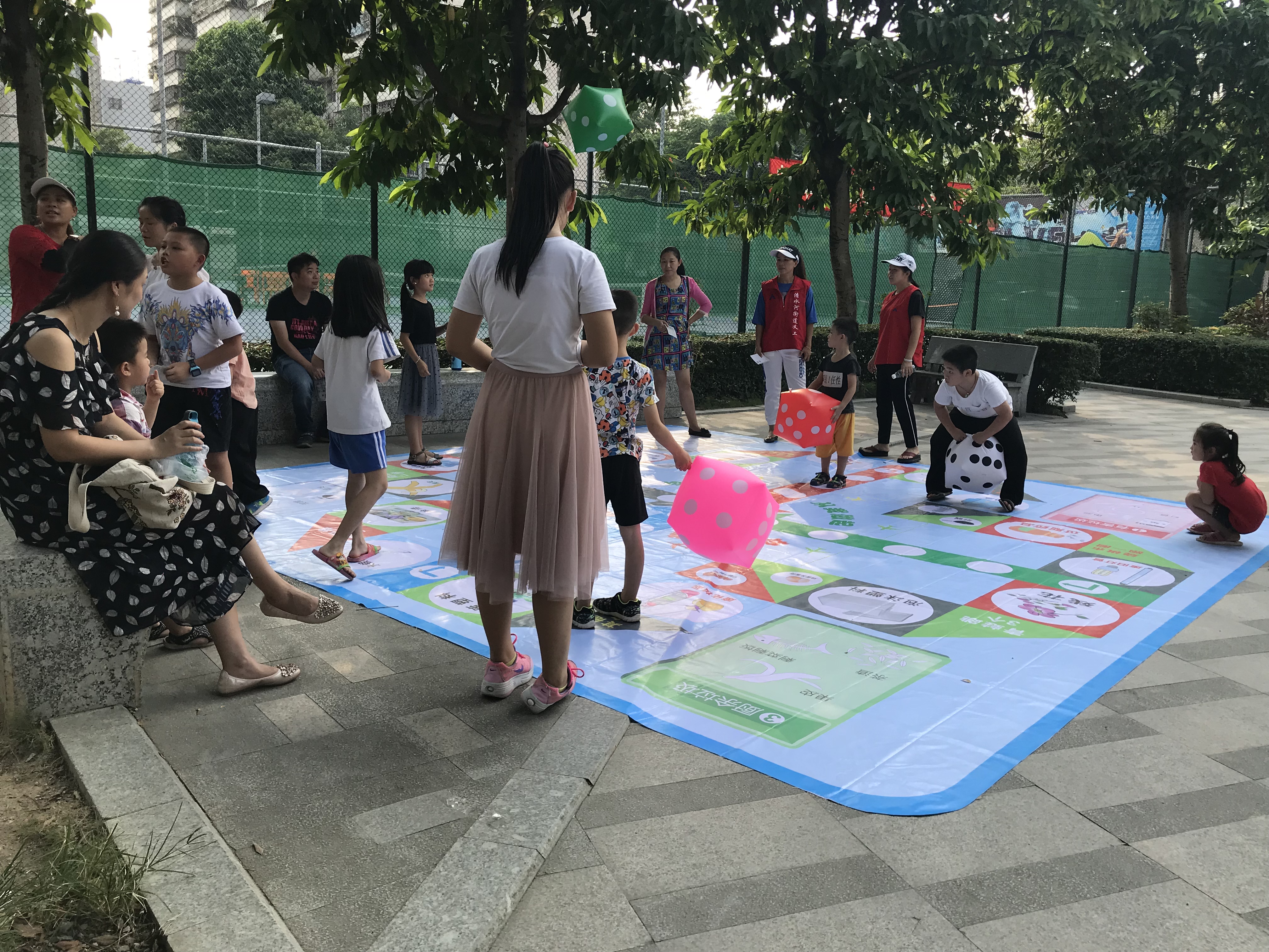 活动现场设有5个摊位,分别是宣传摊位、脚踏飞行棋游戏、幸运转盘游戏、抖乒乓球游戏以及飞镖游戏,旨在让居民通过玩游戏了解“悦读 ●成长”亲子绘本故事旅行项目”,根据需求进行报名参与。居民们有序的穿梭于各个游戏摊位中,特别是抖乒乓球的游戏吸引了近百名小孩进行参与。