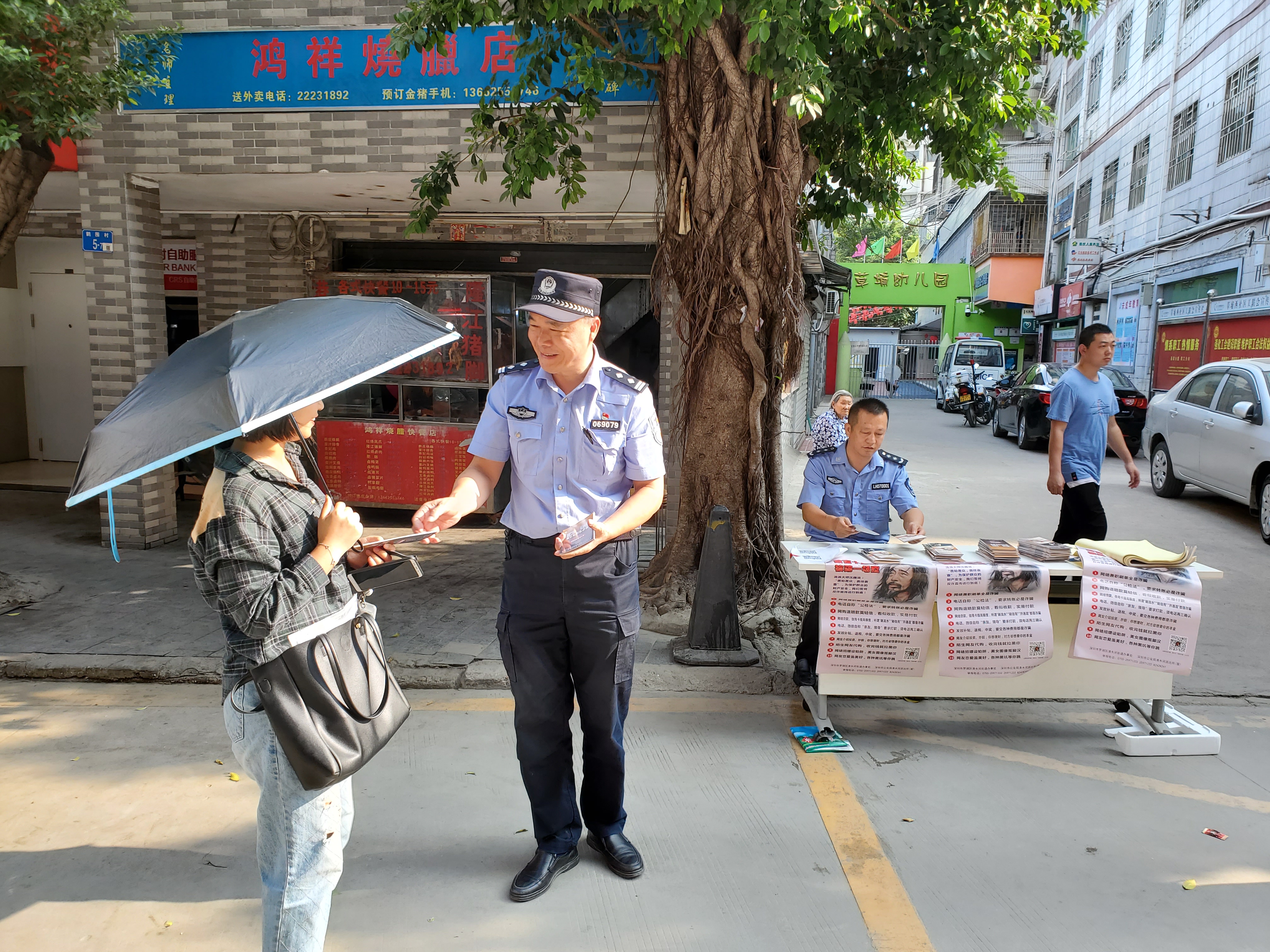 为增强居民群众防范诈骗犯罪常识,减少诈骗犯罪案件的发生,提高居民群众防范诈骗意识,切实维护居民群众的切身利益,草埔西社区工作站联合草埔西社区警务室于10月23日下午在鹤围步行街开展防诈骗宣传活动。