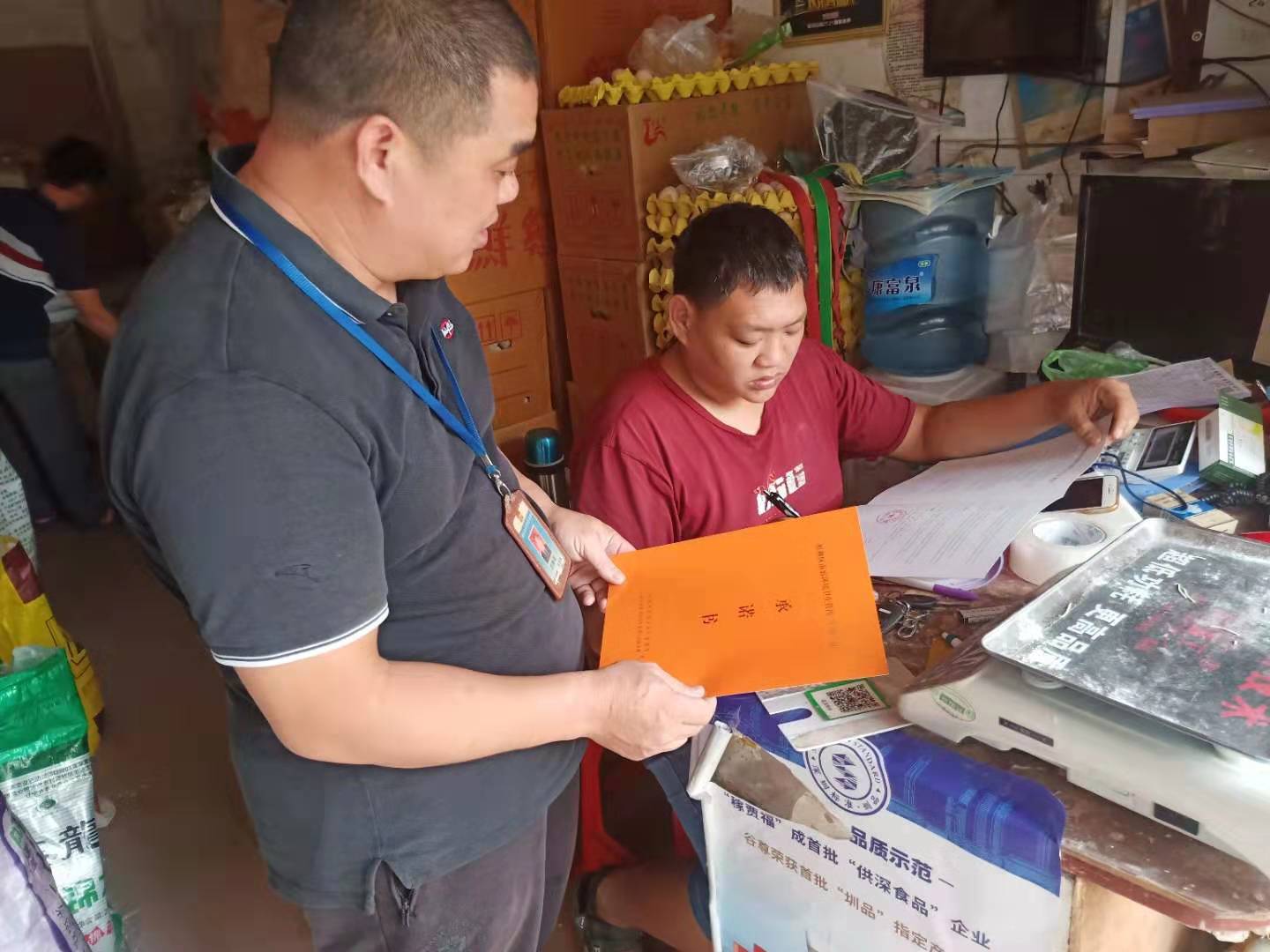 工作人员指示门店负责人通读承诺书内容,领会内要,门店负责人表示此后定遵守相关法律法规,自觉做好“门前三包”工作。