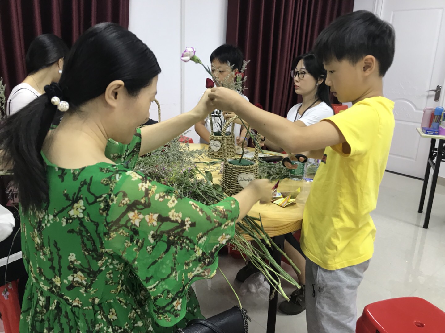 活动中,魏老师通过游戏互动、家庭关系铁三角,与成员进行互动,让参与的亲子体会亲子相处、亲子沟通的技巧,让家长更懂与孩子进行沟通,拉近亲子彼此之间的距离,营造整个场面热闹的气氛。接下来,魏老师现场带领参与的亲子讲解插花的技巧,待魏老师教导后大家纷纷在老师的指导下发挥自己的创意插花,活动现场,魏老师多次引导家庭进行情感体验,并鼓励他们表达出自己的感受。一共有10组亲子互相进行表白,小李小朋友把刚做好的花篮提到家长面前进行表白:“妈妈我爱你!”,有的家长感慨地说道:“这次活动,让我感受了幸福的味道”...