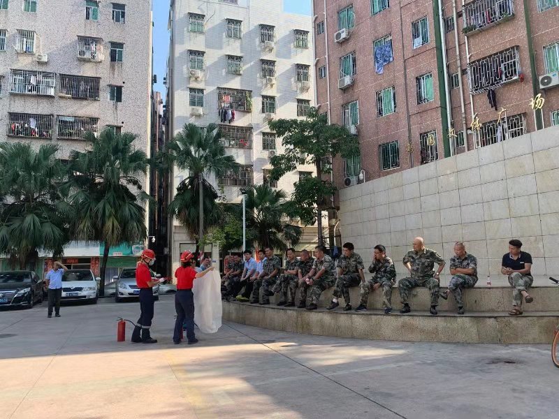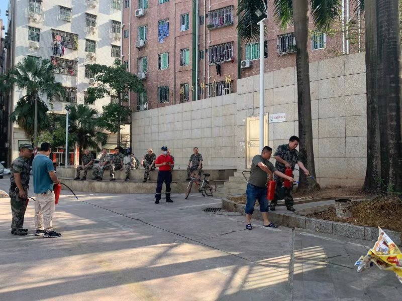 为强化社区兼职义务消防队员实操知识,提高义务消防队伍在紧急状况下的应变、抵御火灾能力,在“11.9”全国消防日即将到来之际,11月5日,草埔西社区邀请深圳公益救援队培训人员对14名辖区股份公司兼职义务消防队员在鹤围文体广场开展消防演练。