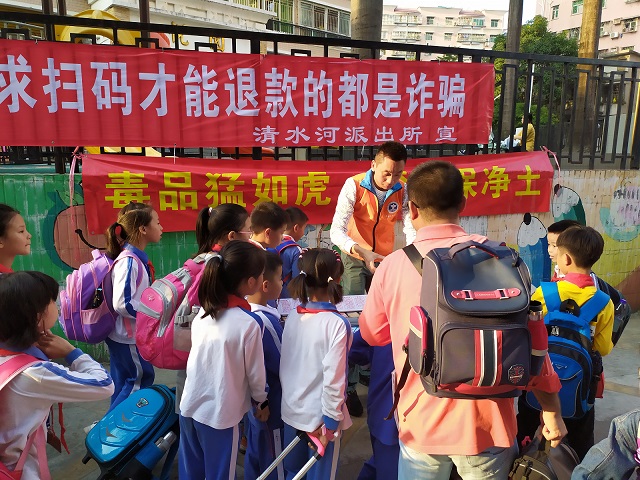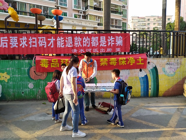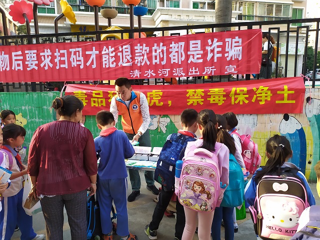 11月13日下午,为加大禁毒宣传力度,增强社区居民识毒、防毒、拒毒能力。草埔西社区工作站禁毒社工走进社区、学校周边,开展“毒品猛如虎,禁毒保净土”主题禁毒宣传活动。