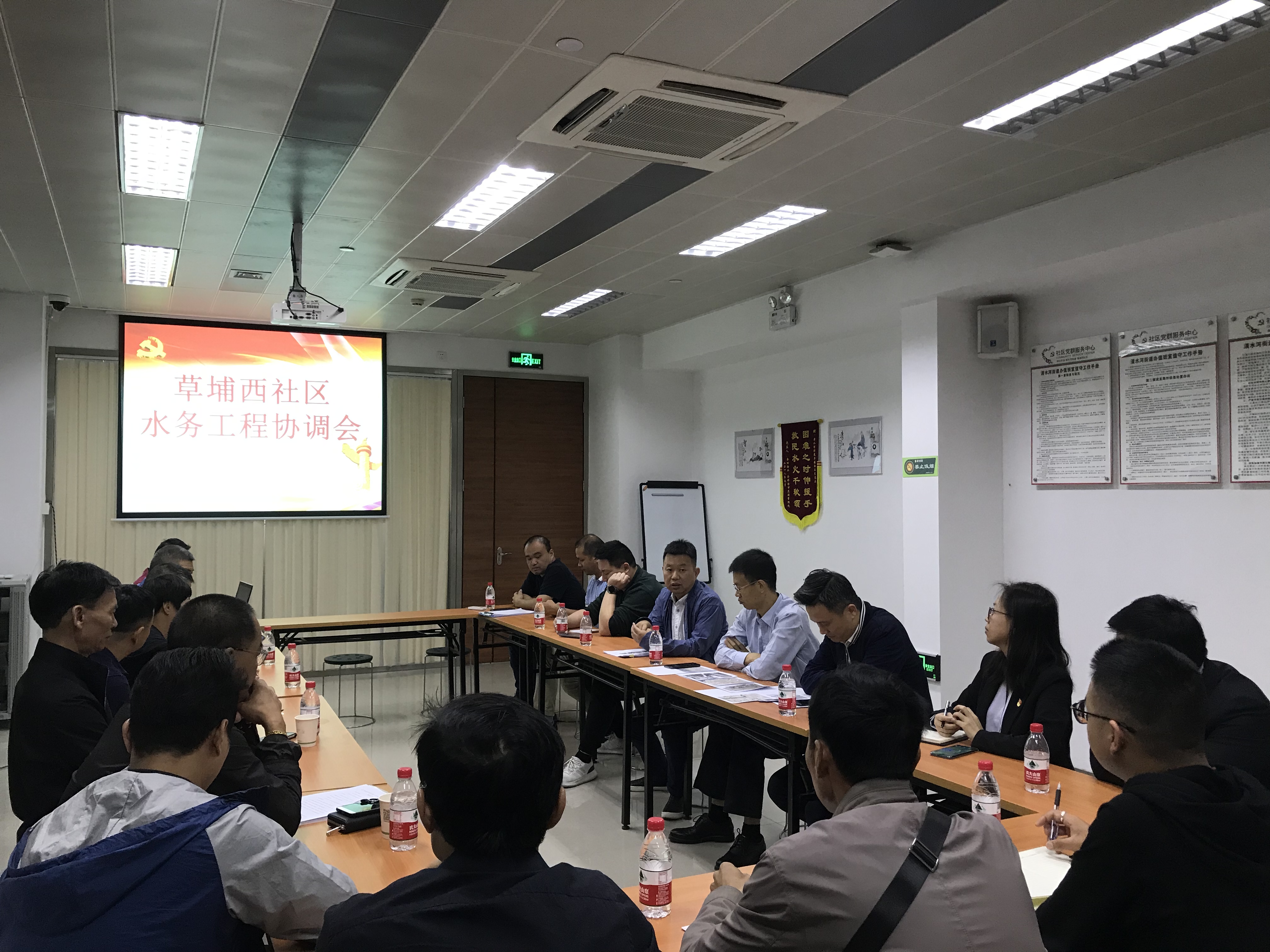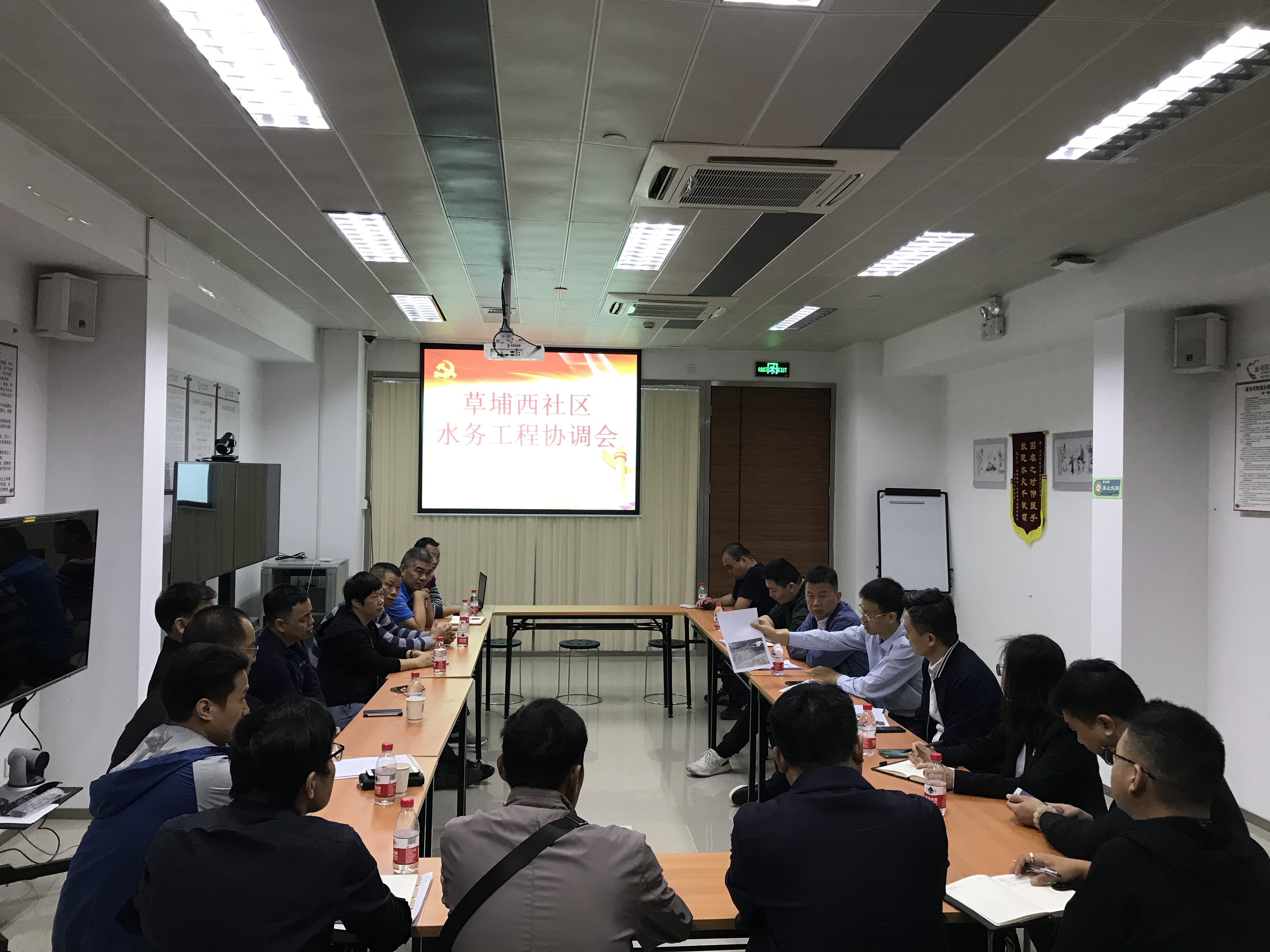 首先,监督小组召集辖区内各单位工作人员代表以及施工方代表到草埔西社区工作站会议室召开会议。