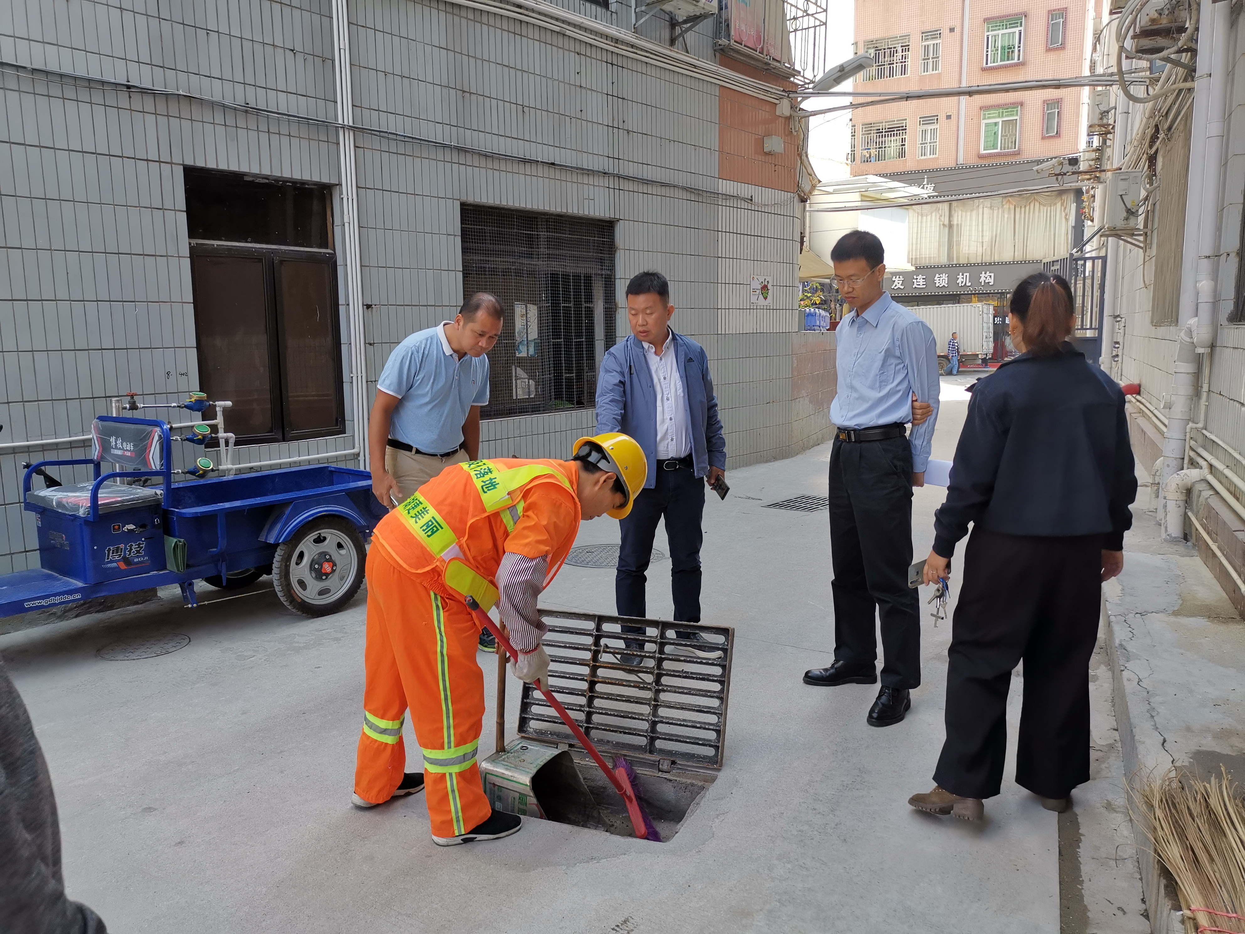 11月20日,罗湖区水务局副局长郭立明,清水河街道办事处副主任刘思源到草埔西社区开展水务工程进展监督。