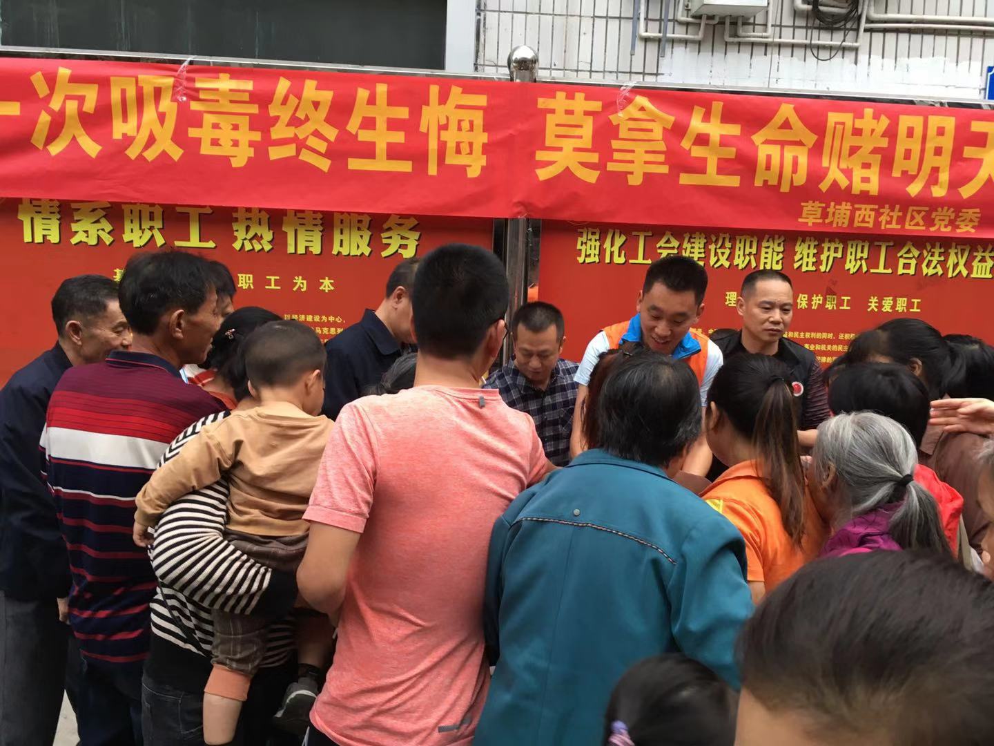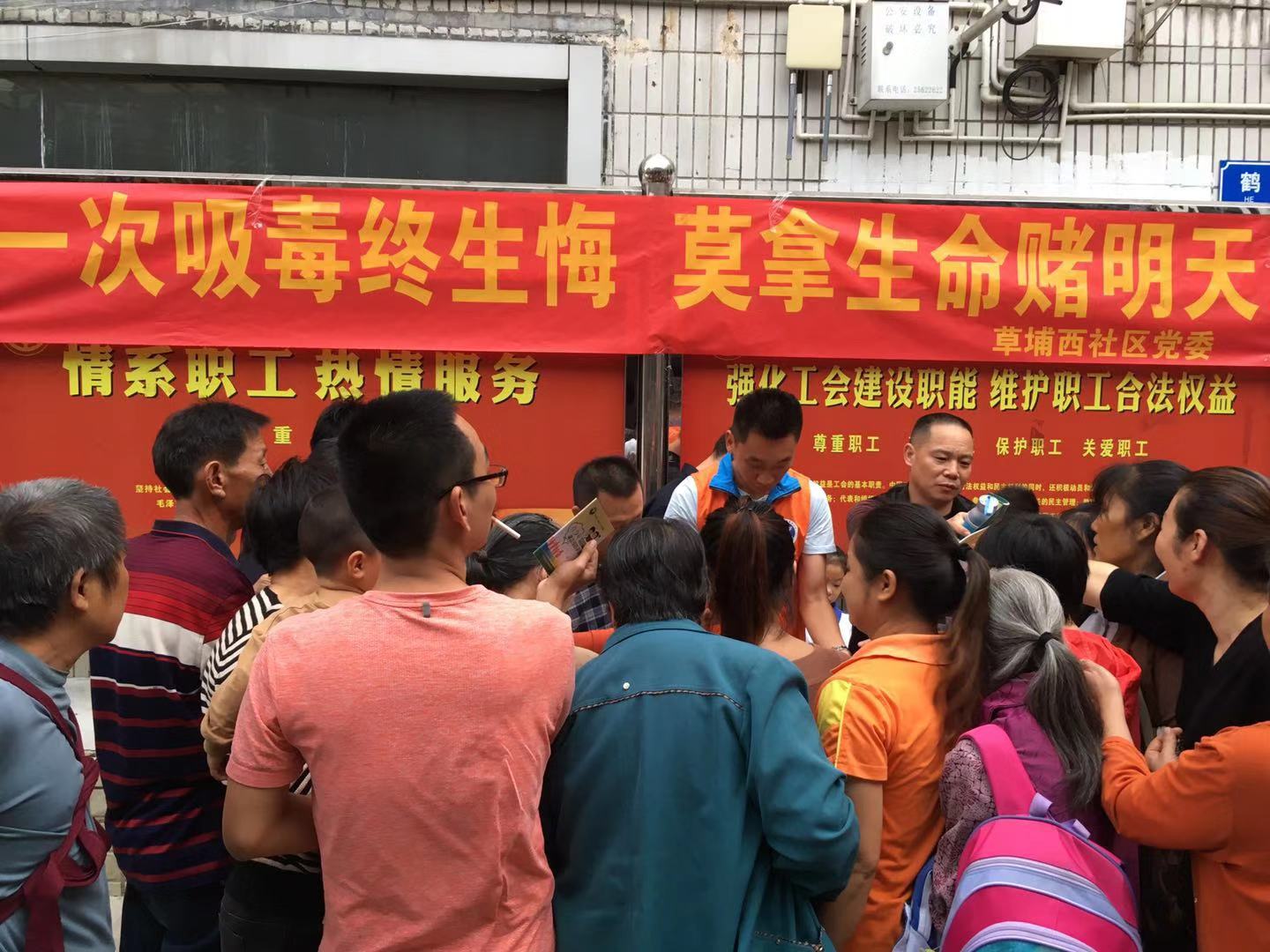 为进一步加强禁毒宣传,普及禁毒知识,不断增强全民识毒防毒拒毒能力。2019年11月26日下午,草埔西社区工作人员携禁毒社工在辖区内开展“一次吸毒终生悔,莫拿生命赌明天”禁毒宣传活动。