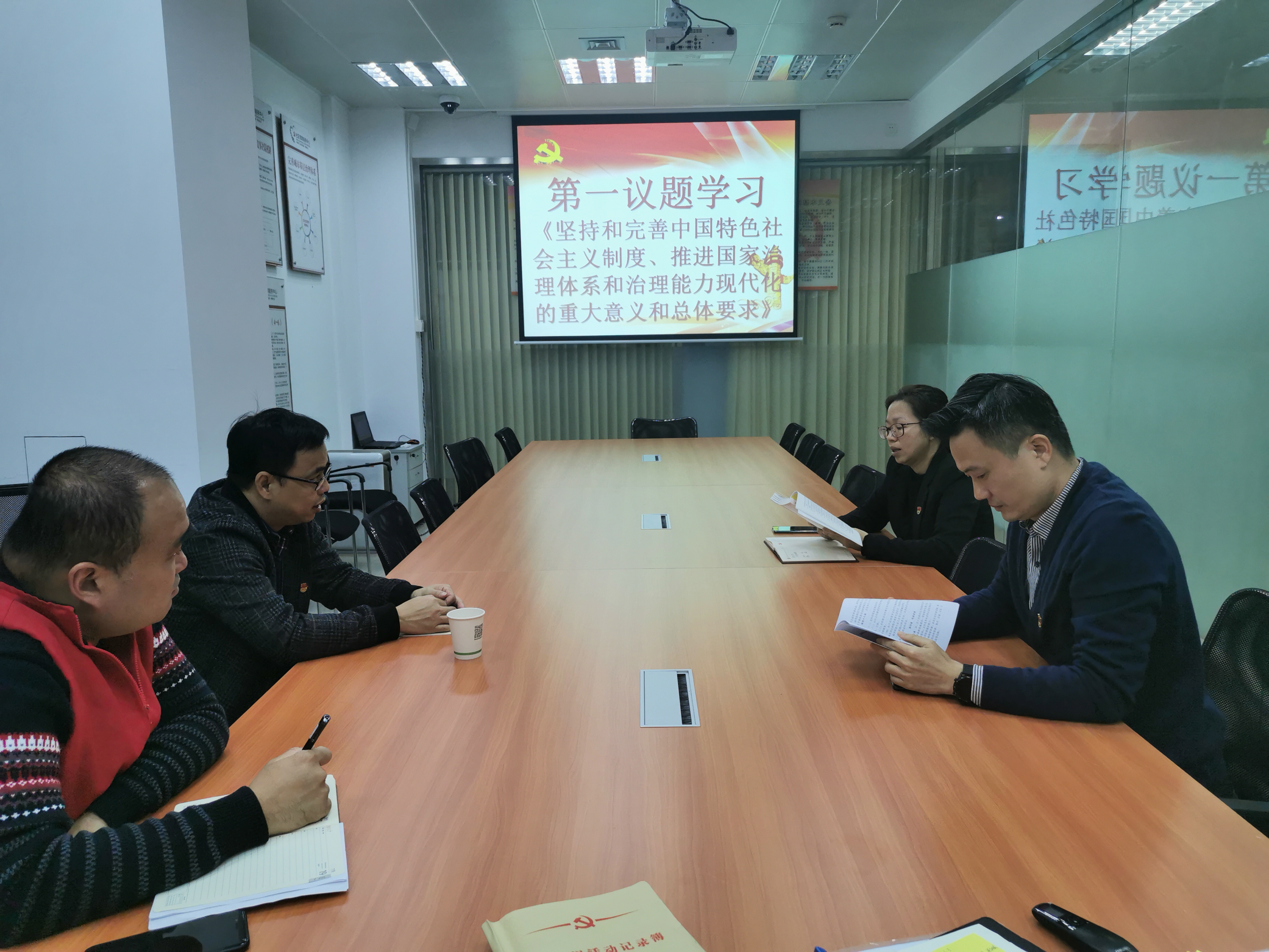 首先,党委专职副书记张佩芬组织大家一起进行“第一议题”学习,本次学习主题是《坚持和完善中国特色社会主义制度、推进国家治理体系和治理能力现代化的重大意义和总体要求》会议要求,各委员会后向各支部党员传达内容并持续深入认真学习。