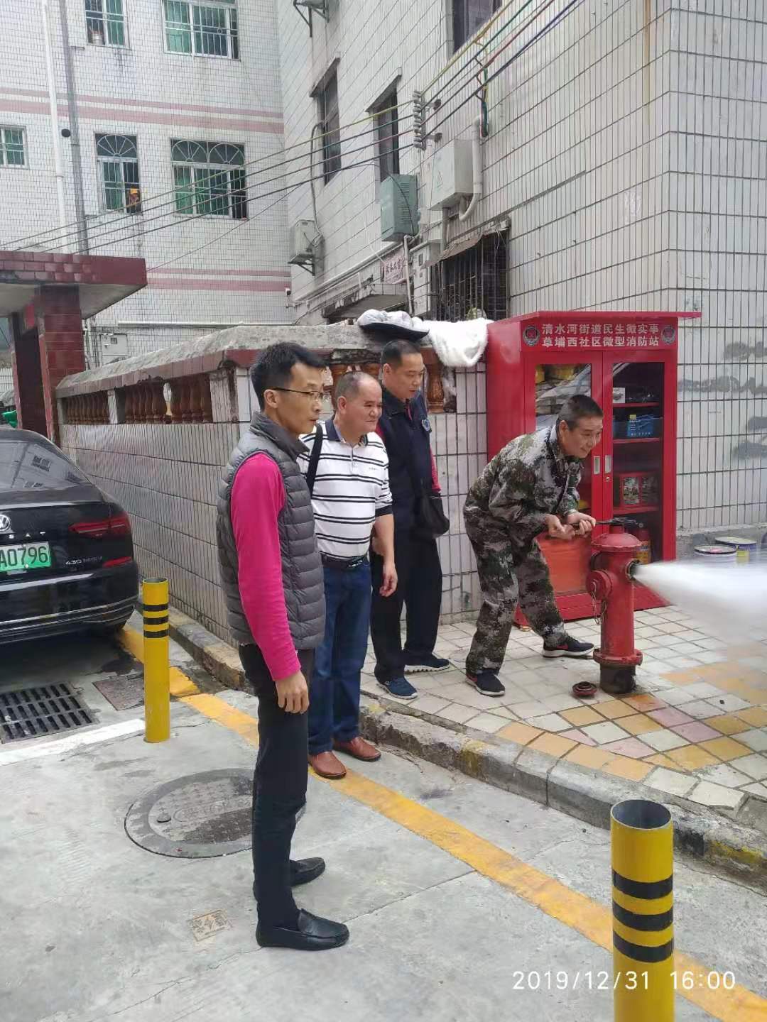 为确保城中村内消防应急设施正常使用,12月31日,草埔西社区安全专干组织辖区股份公司安全负责人、物业部主任检查城中村消防水压状况,测试发现城中村内消防水供应系统均能正常使用。