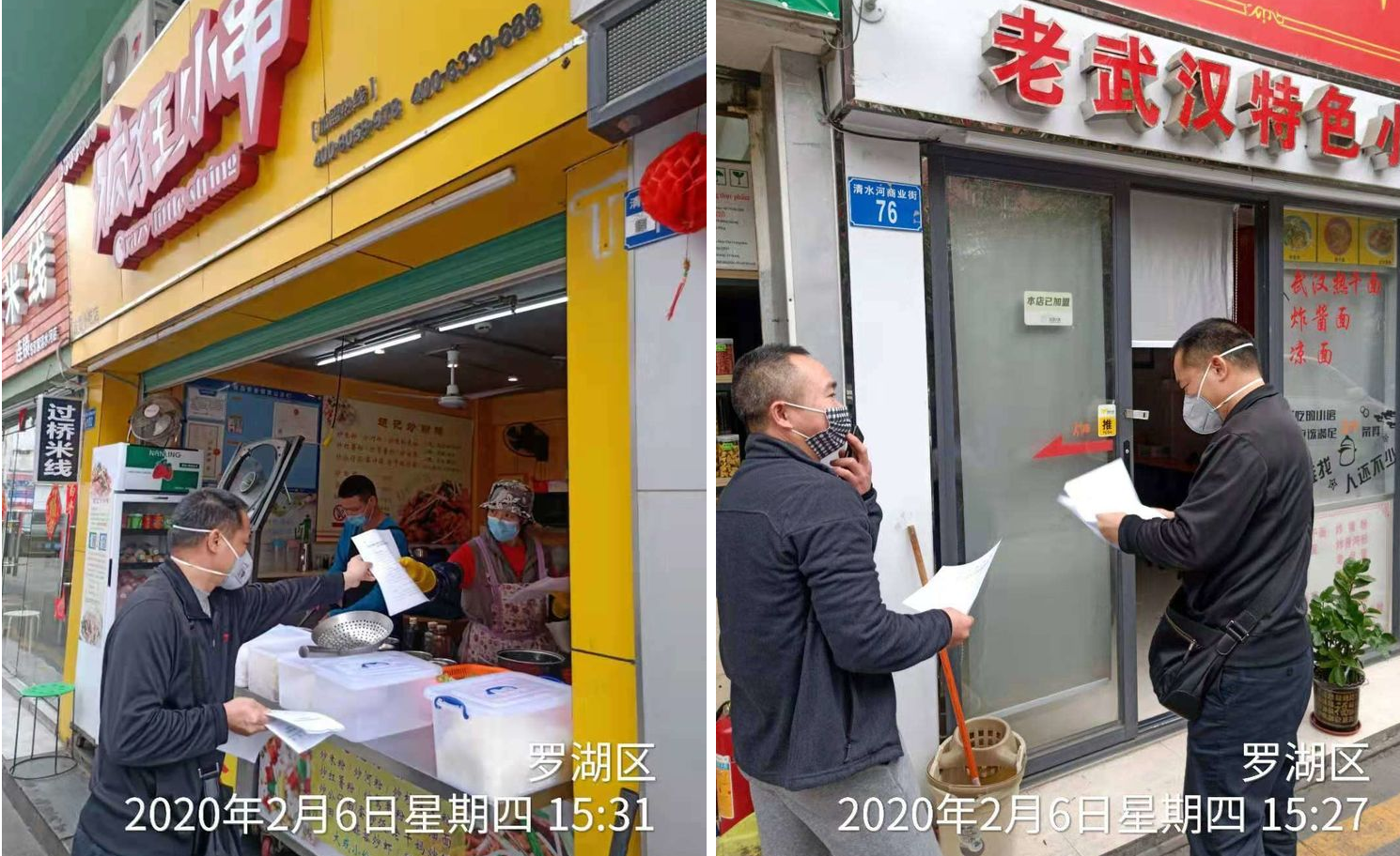 为做好当下形势防控工作,2月6日, 草埔西社区党委安排工作人员为社区已营业的餐饮店派送商务局关于进一步做好餐饮业新型冠状病毒感染肺炎防控工作的通知和指引,并口头向营业单位宣传防疫知识,要求其做好防疫工作。